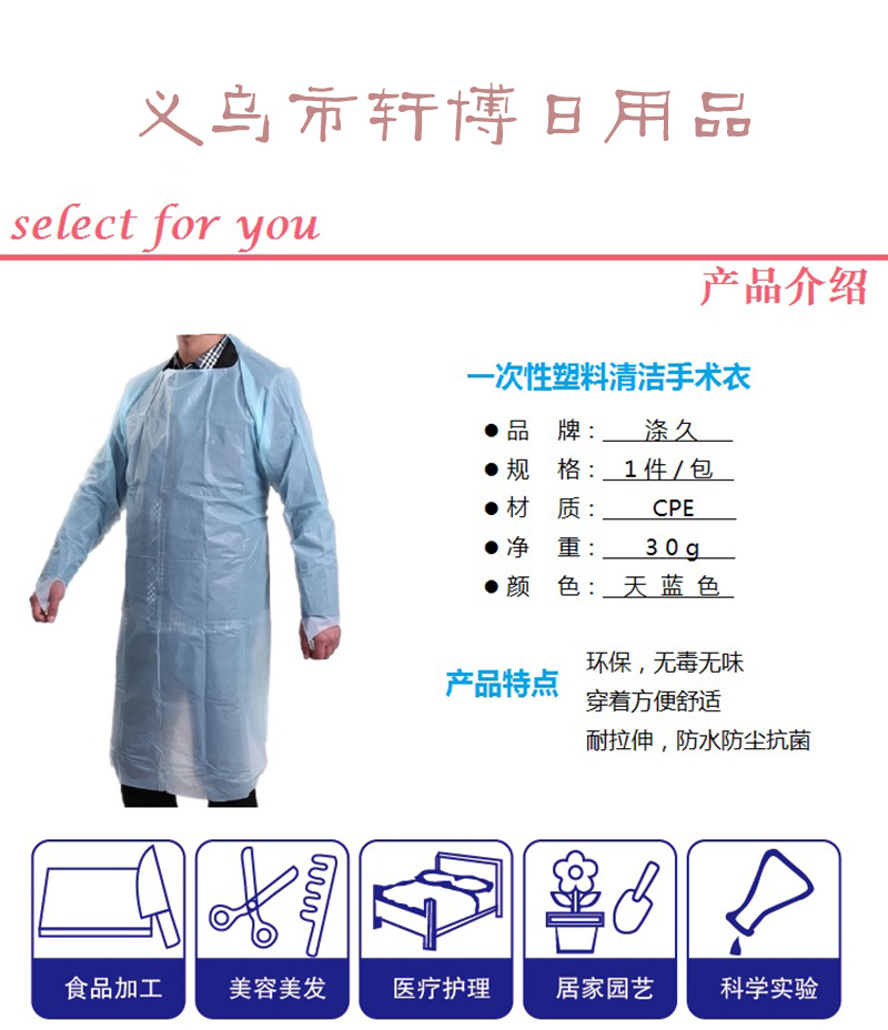 防水防油橡筋袖口cpe袍食品加工隔离衣一次性工作服