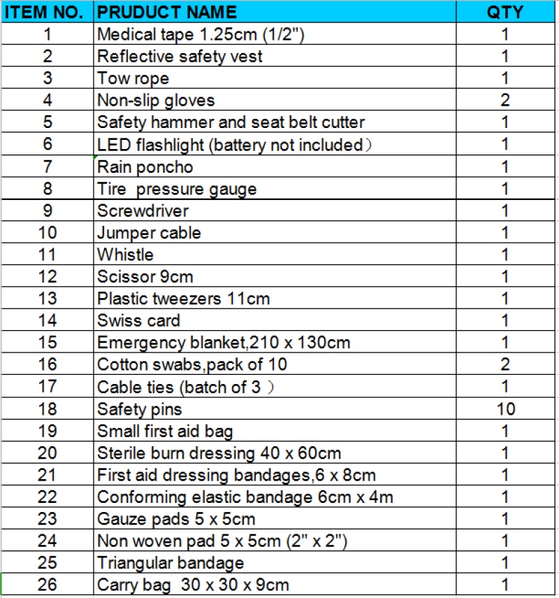 【产品名称】户外旅行必备 汽车救援包 随车应急工具包 13件套车载急救包