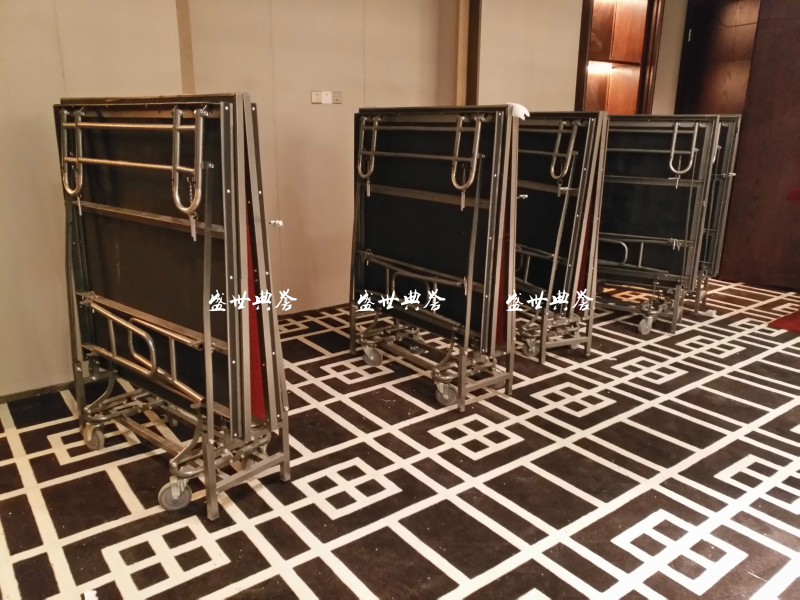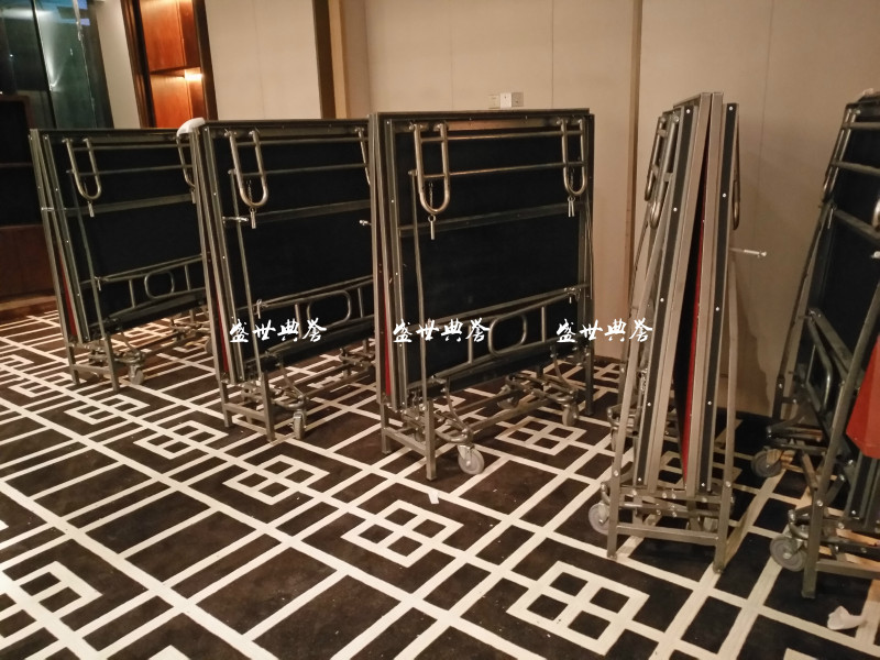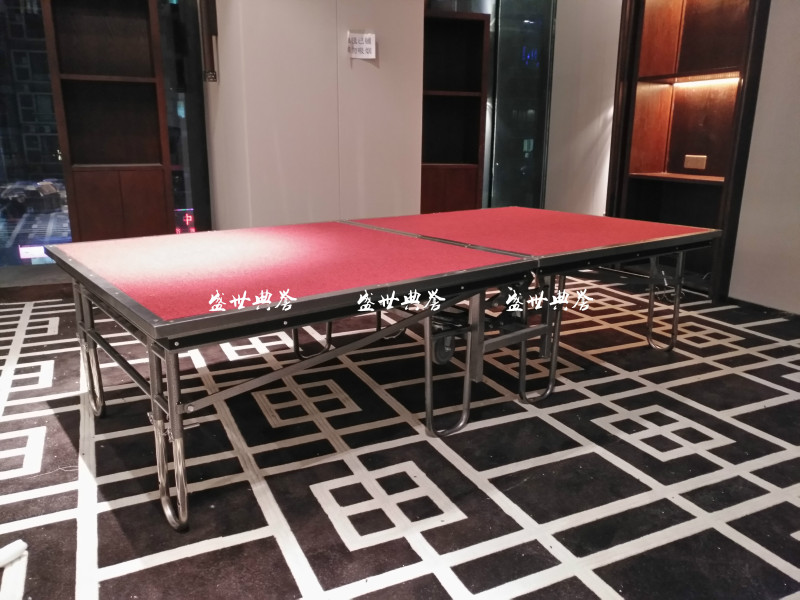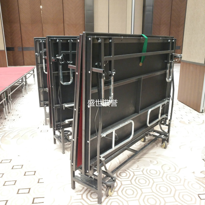 【舞台规格】:折叠舞台单张规格:长*宽= 1.22*2.44米,1.83*2.44米。高度可调范 围:0.41/0.61/0.81米。
