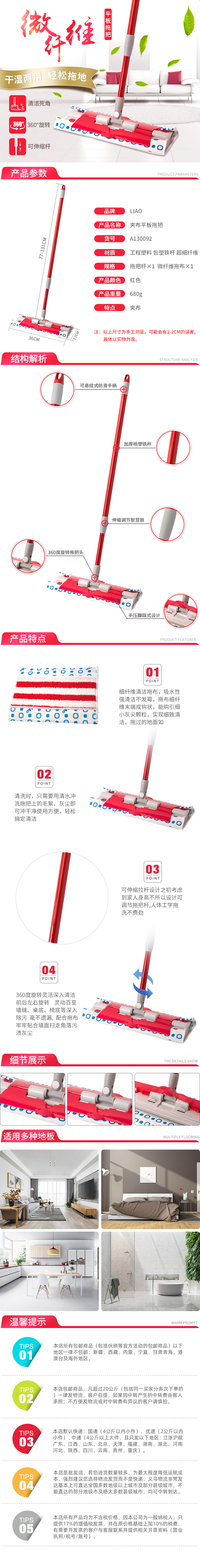 丽澳/LIAO 40cm平板拖把夹布拖布客厅地板清洁 360度旋厂家批发 投诉