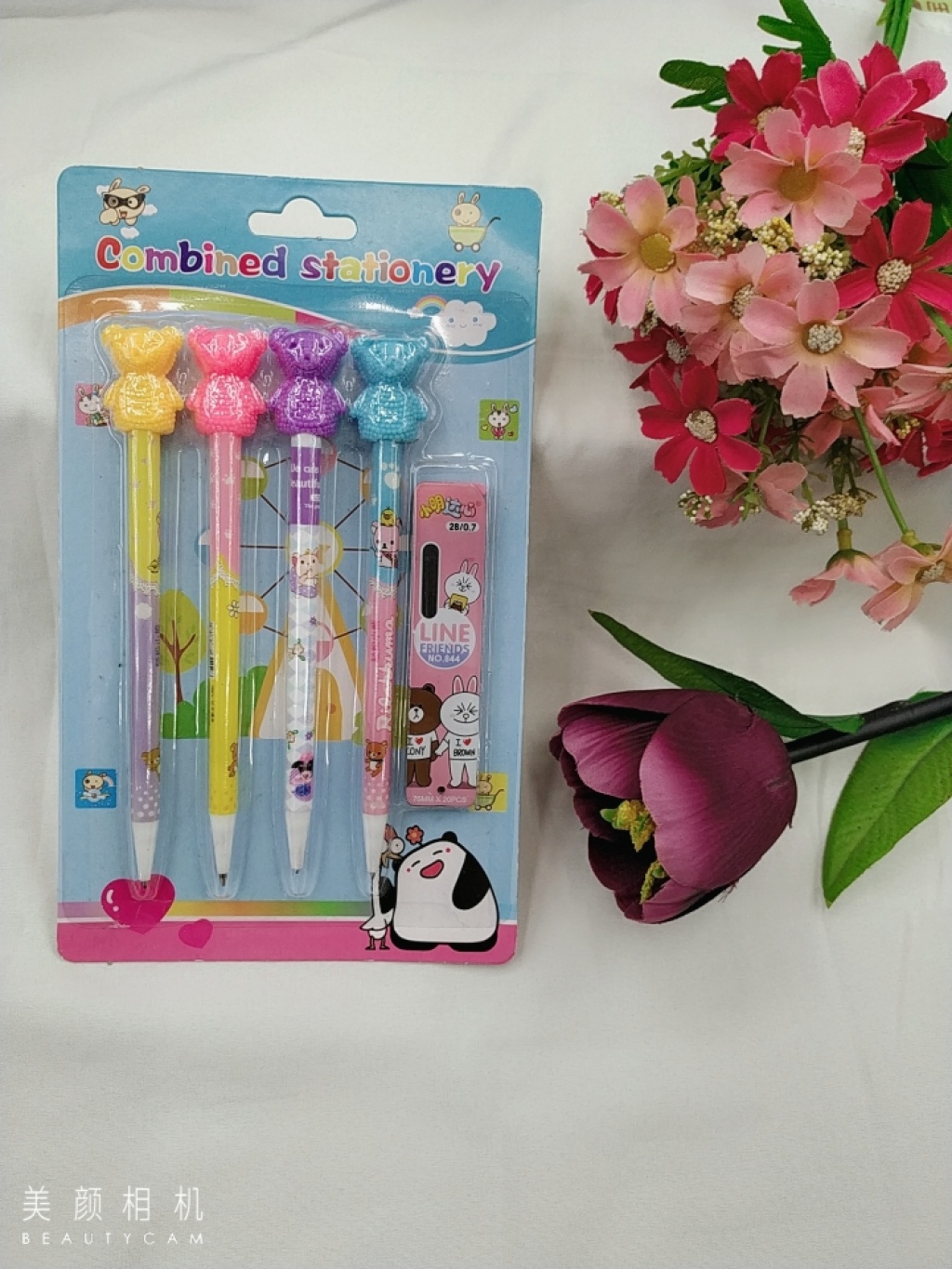 卡爱小熊自动铅笔,四支不同颜色搭配一盒笔芯超市专卖,出口标准,学习及送礼佳品……