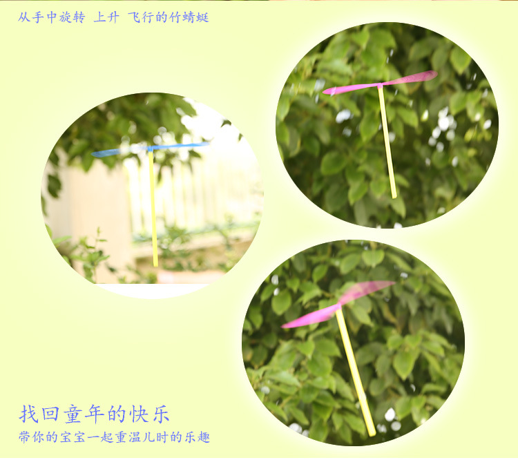 商品特点:还记得儿时的小玩意吗?竹蜻蜓,在你的手中旋转---飞速上升---旋转---飘落---