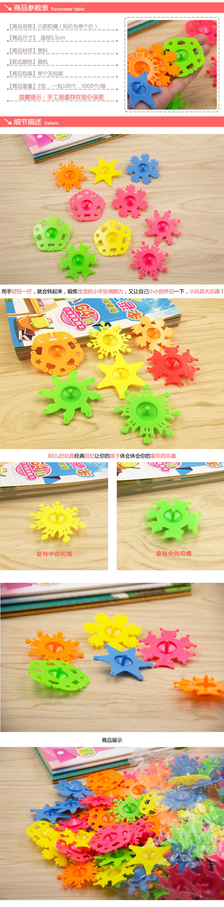 六款陀螺 儿童玩具 塑料手转小陀螺 传统怀旧多彩 儿童幼儿园玩具 English | 投诉