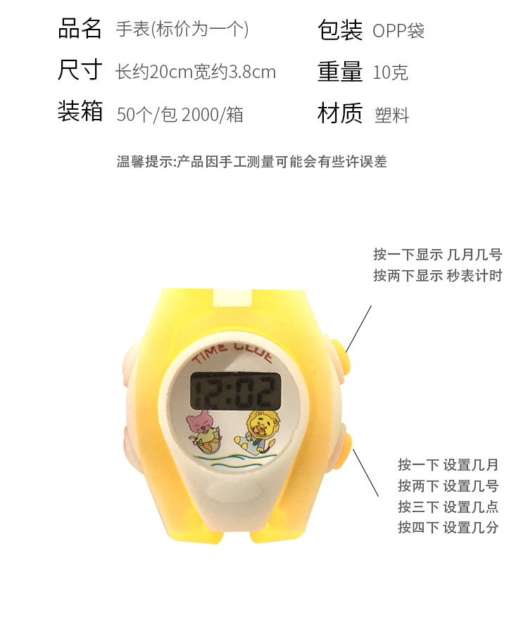 3061儿童手表手环卡通手腕带幼儿园电子表带地摊玩具小礼品多色礼 English | 投诉