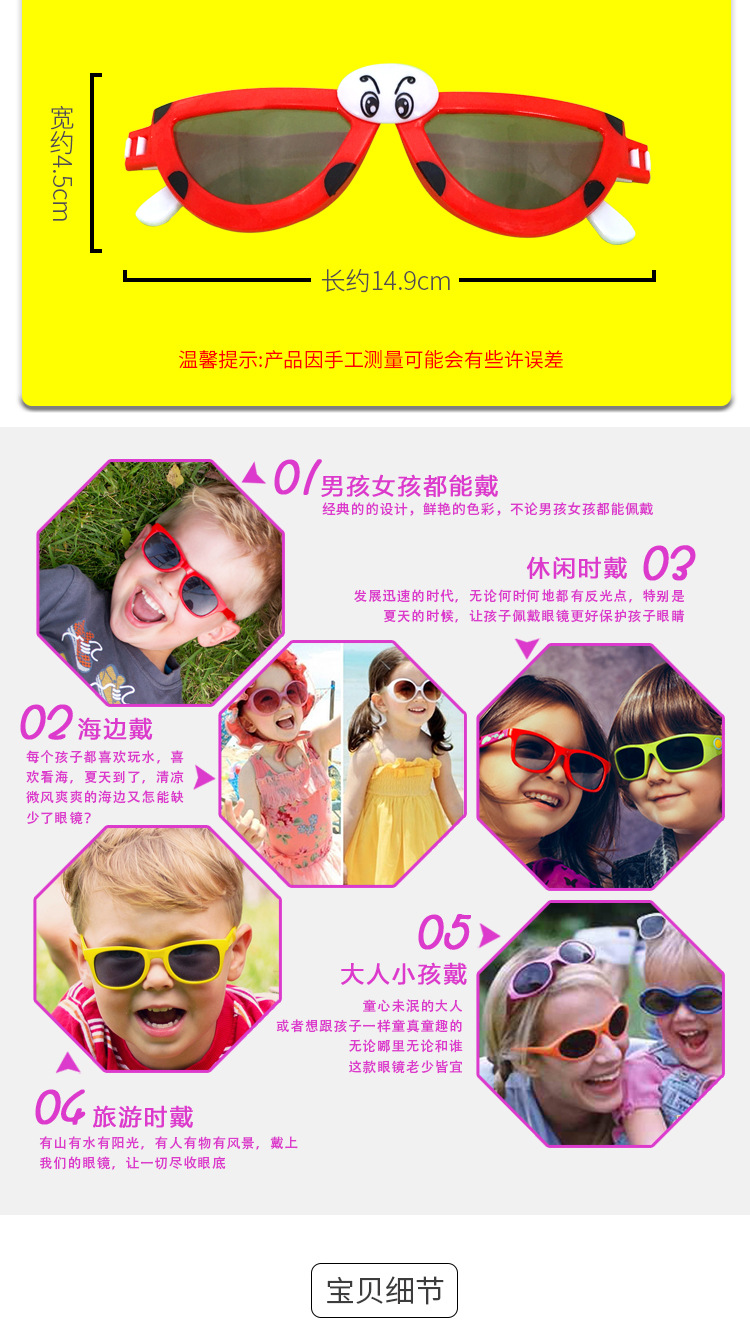 儿童眼镜七星瓢虫 男童女童墨镜韩国 卡通动物眼镜宝宝可爱礼品 English | 投诉