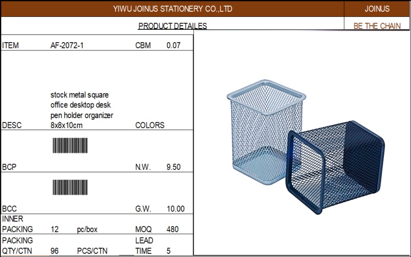 金属丝网防锈单筒收纳盒网状方笔筒黑色桌面金属笔筒AF-2072-1 投诉
