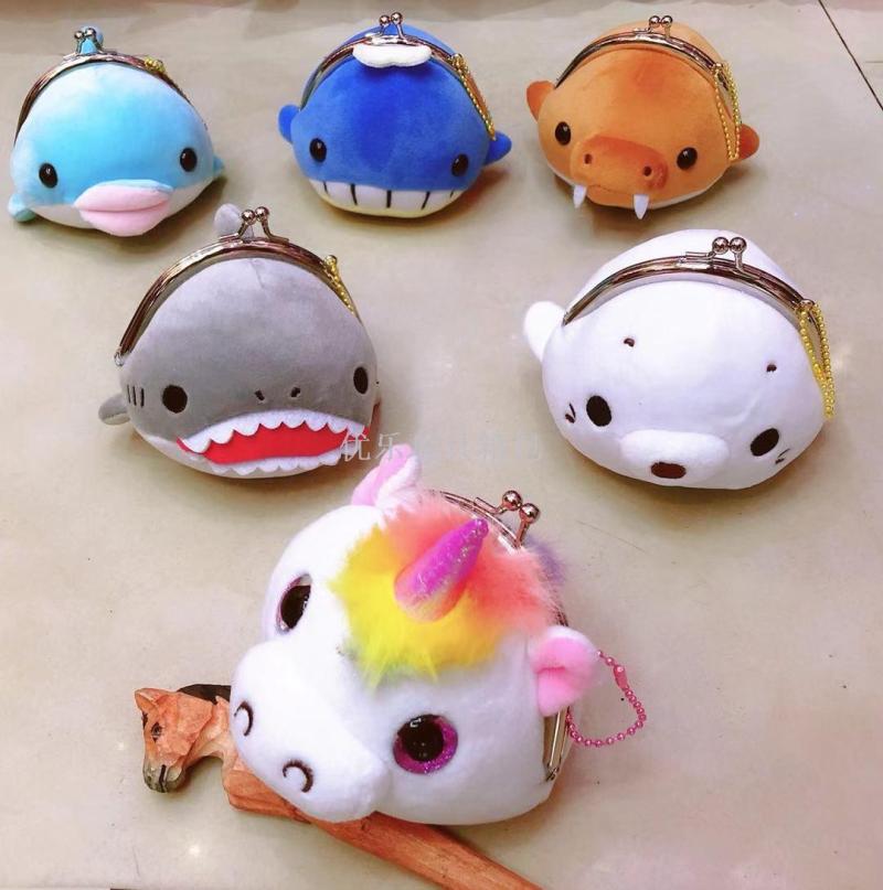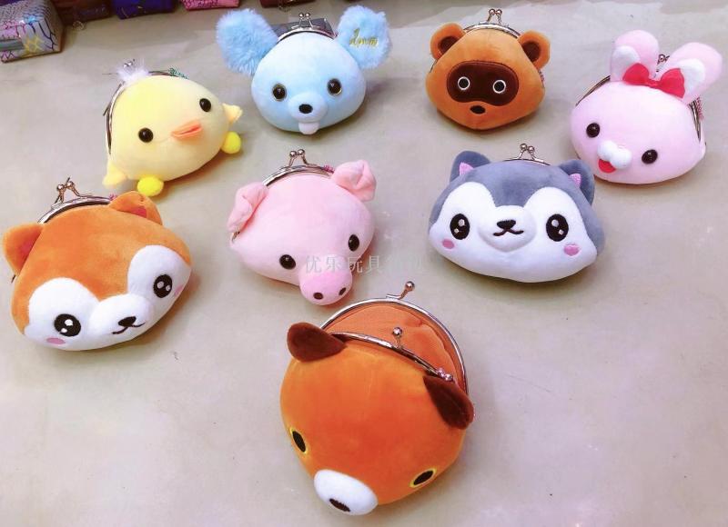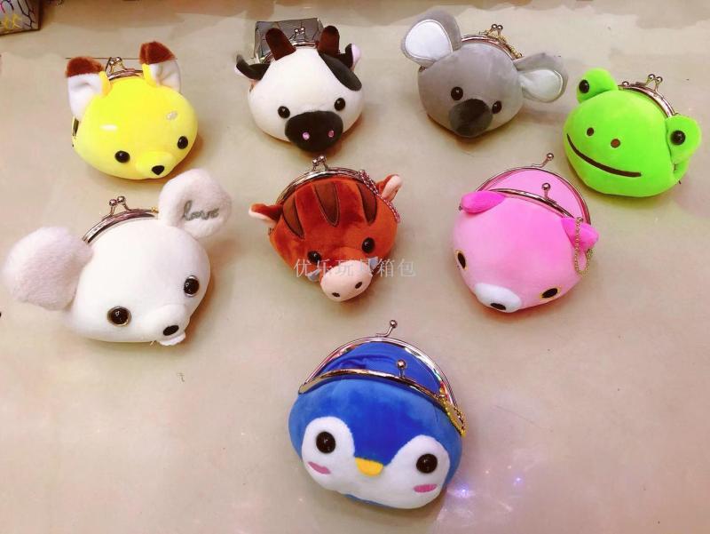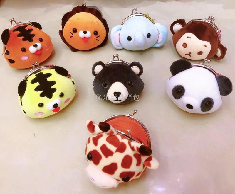 毛绒四面弹铁夹包 铁扣包 立体动物头儿童毛绒零钱包