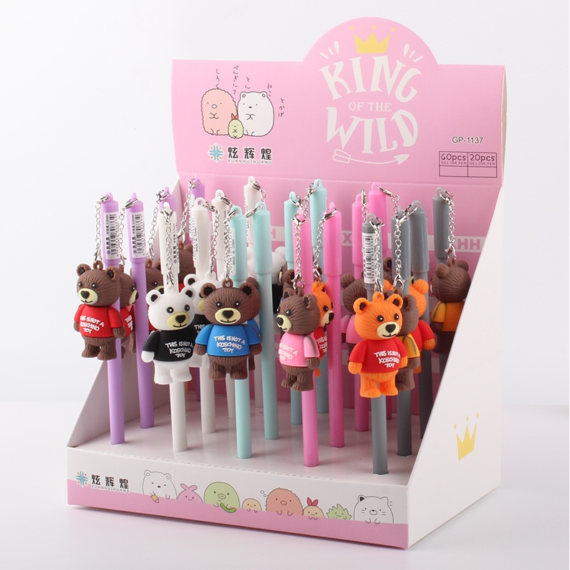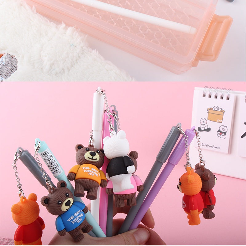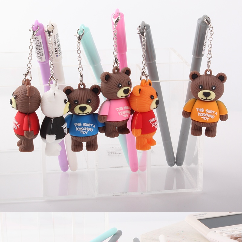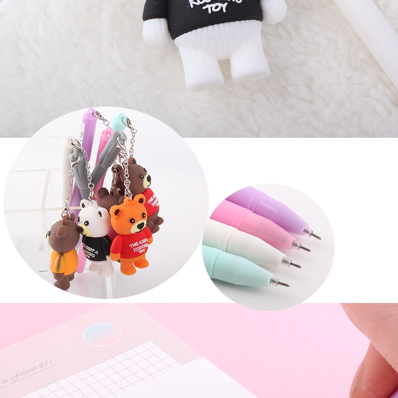 韩国热卖精品可爱小熊挂件中性笔泰迪熊挂件卡通饰品签字笔黑色笔
