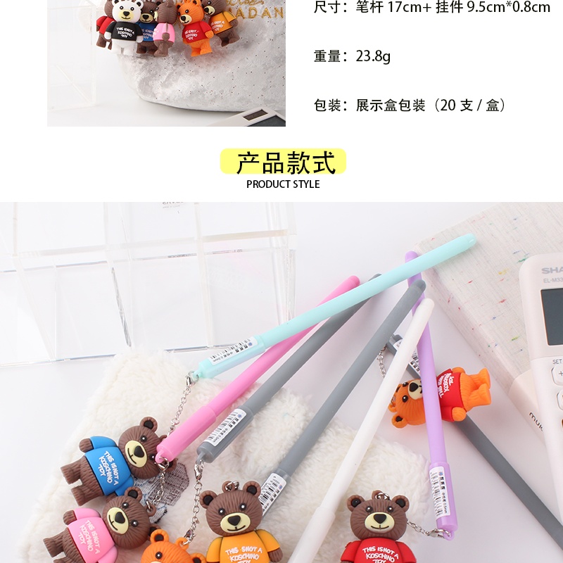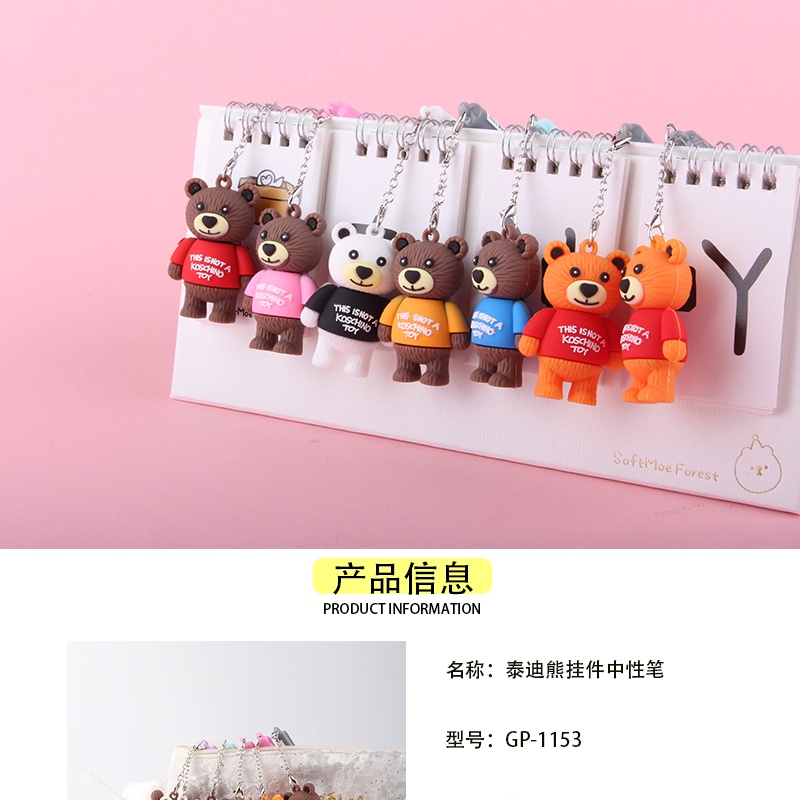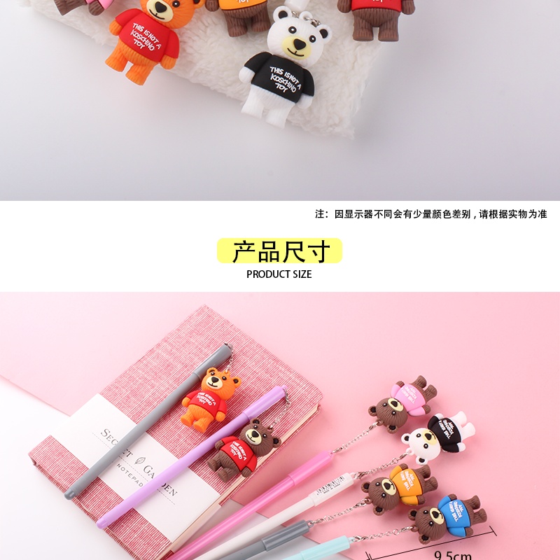 韩国热卖精品可爱小熊挂件中性笔泰迪熊挂件卡通饰品签字笔黑色笔 投诉