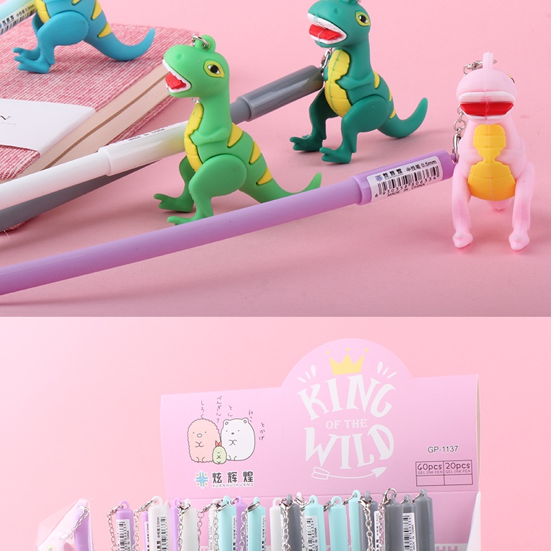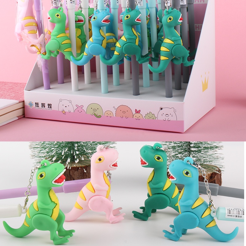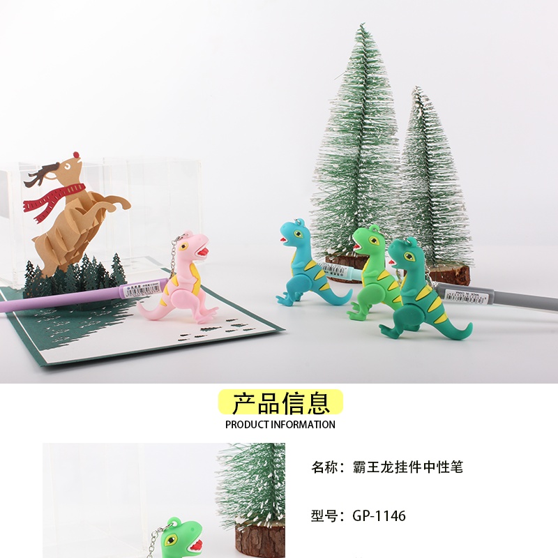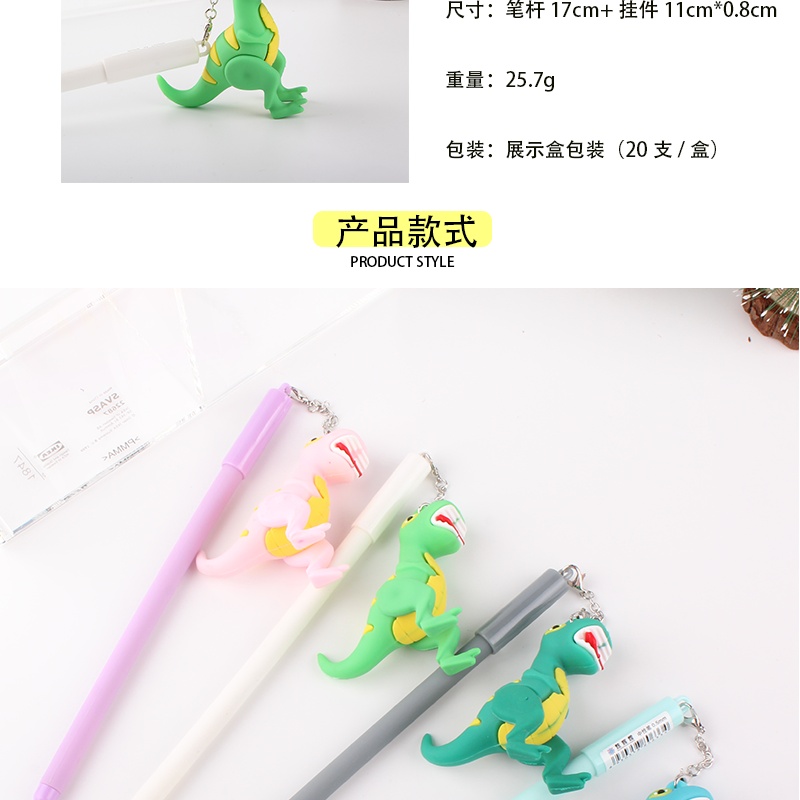 韩版卡通可爱恐龙硅胶霸王龙挂件中性笔学生文具创意书写签字笔批