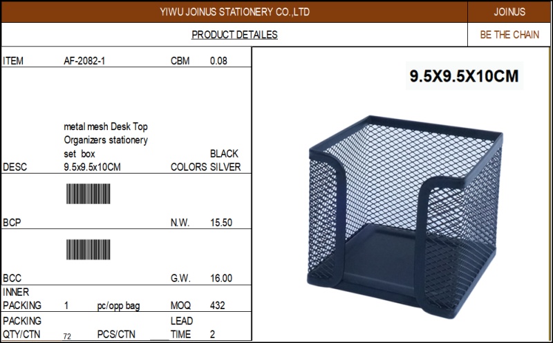 金属丝网防锈网状铁艺圆桌面文具组合套装笔筒收纳方形便签桶10CM 投诉