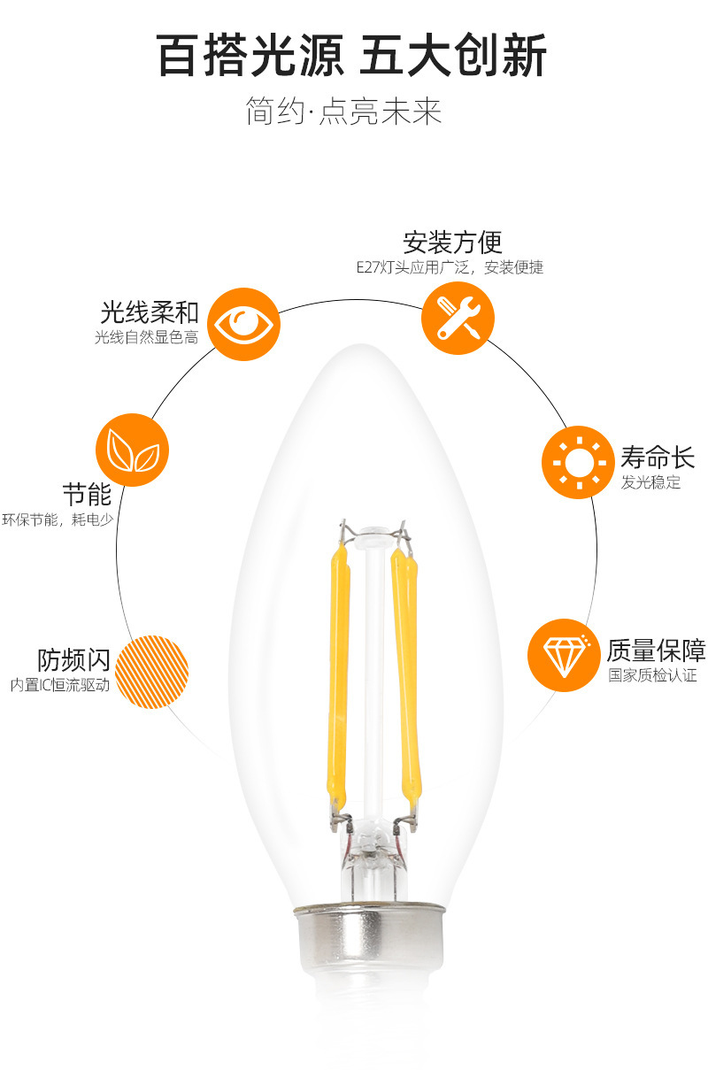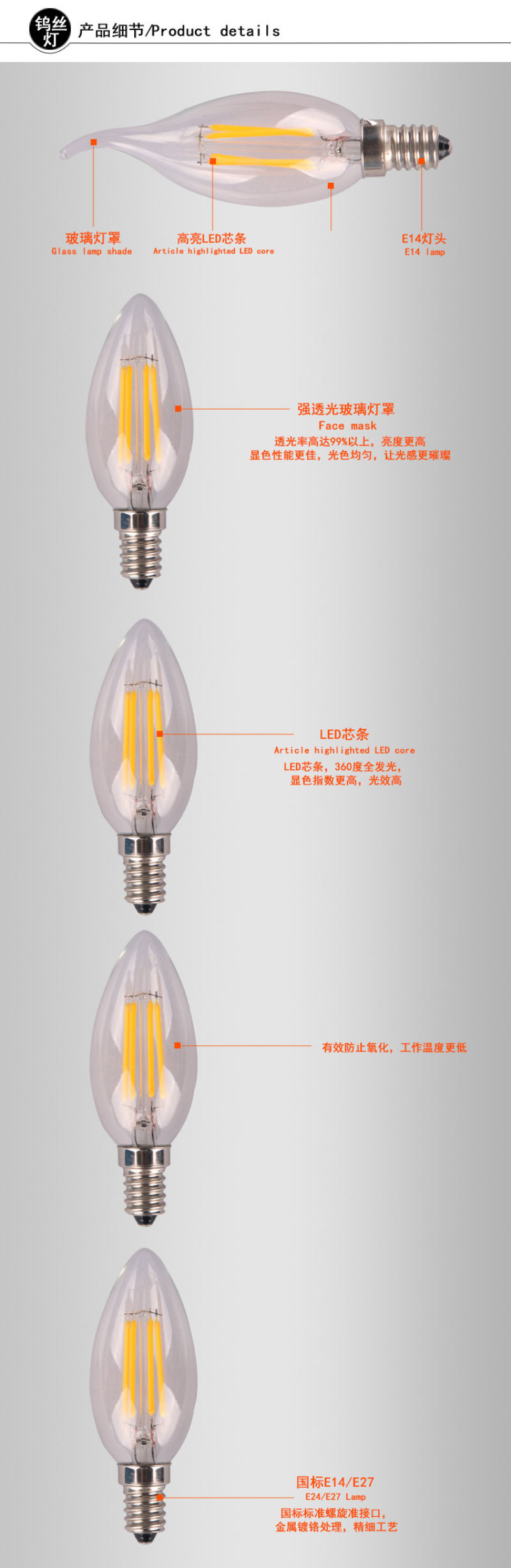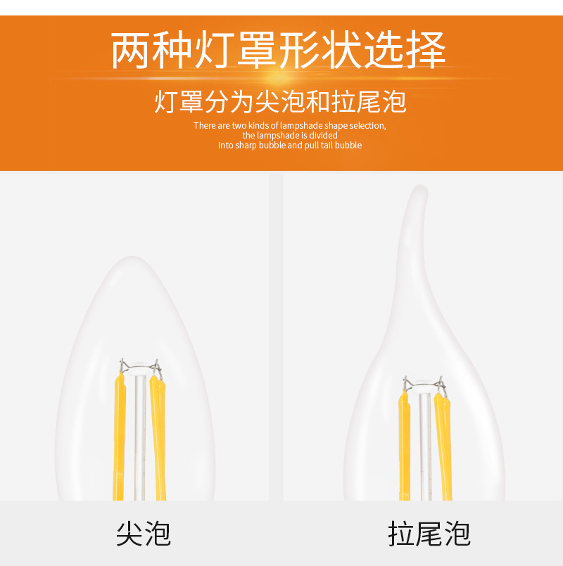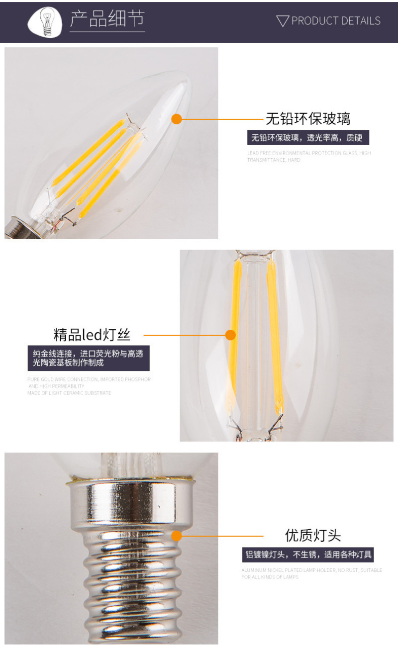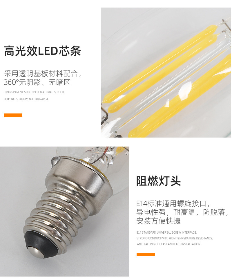 产品名称:E14 C35尖泡拉尾led蜡烛灯 复古钨丝灯爱迪生蜡烛灯led复古钨丝灯