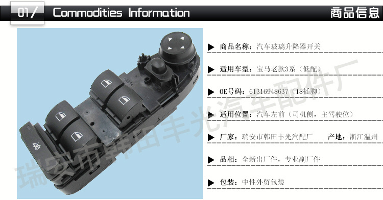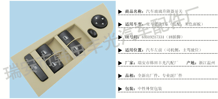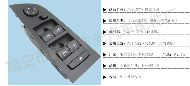 厂家直销 适用于老款宝马3系玻璃升降器开关61319217329黑色低配 English | 投诉