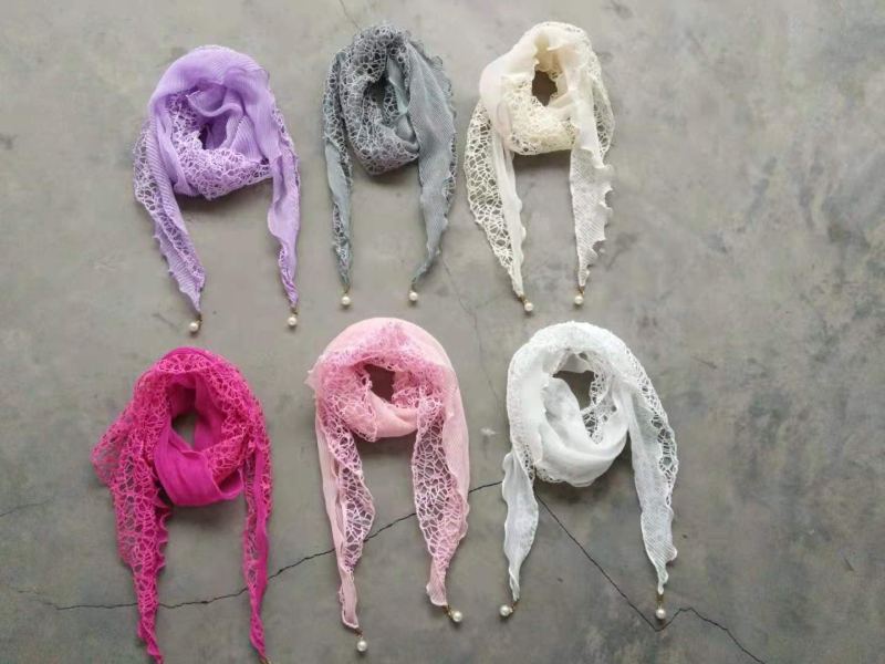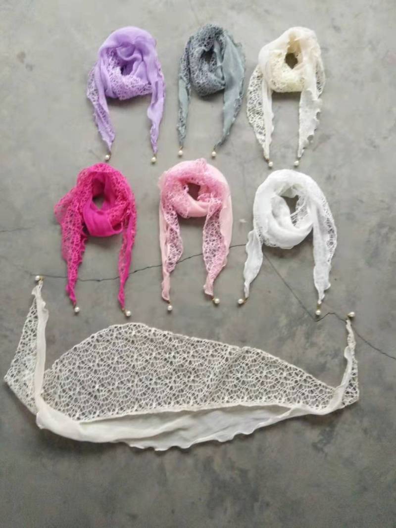 雪纺加网挂珍珠三角巾,春秋女士款围巾,手感舒适,抗皱性强,保形性好,价格实惠