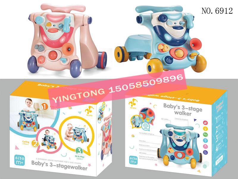 多功能学步车,可以变成手推车,也可以变成乘骑小车。宝宝可以容易得握紧学步车的手把,帮助宝宝站立与步行,让宝宝学习踏出第一步。随着宝宝成长,可以变成一辆小车。后轮带有减速控制,增加安全性。有灯光与多种音乐效果。轮子带软胶防滑,整车结构稳定,重量重。