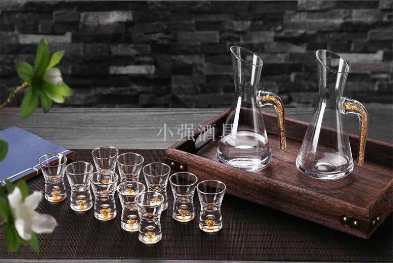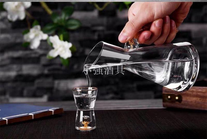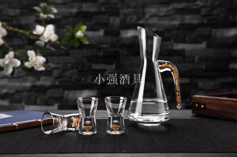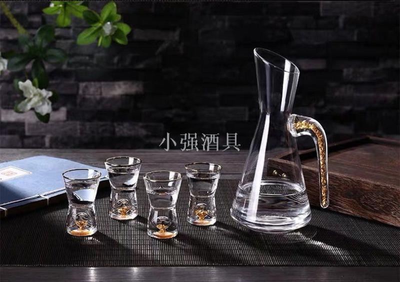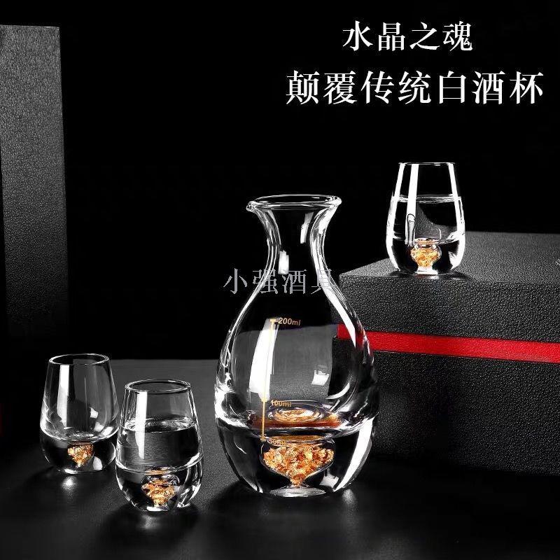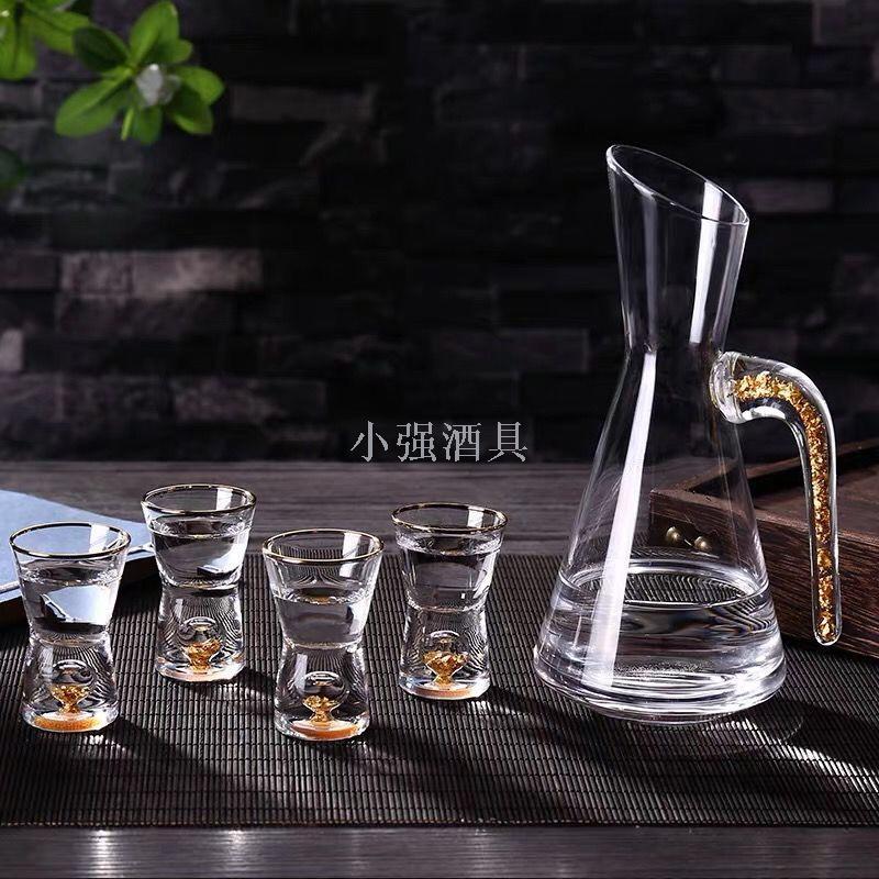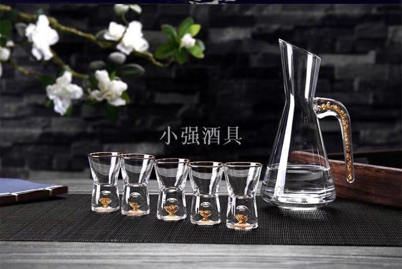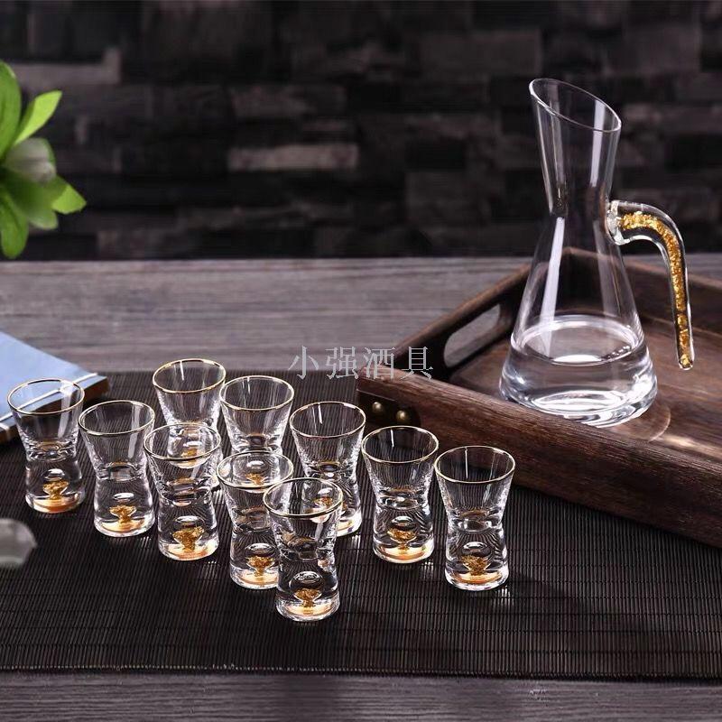 金箔水晶玻璃白酒杯套装分酒器子弹高脚烈酒杯小号酒盅一口杯