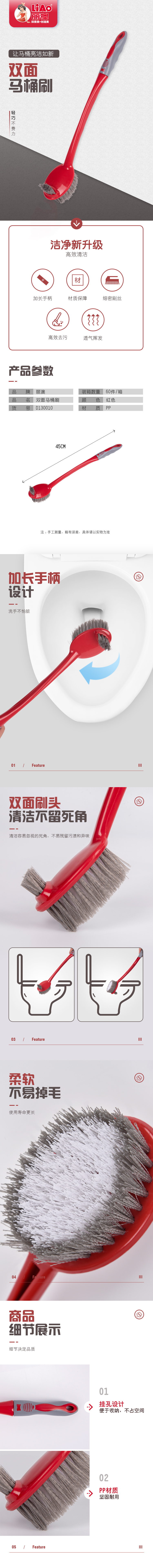 丽澳/LIAO 卫浴清洁马桶刷缝隙刷加长柄多功能 两面背部毛刷批发 投诉