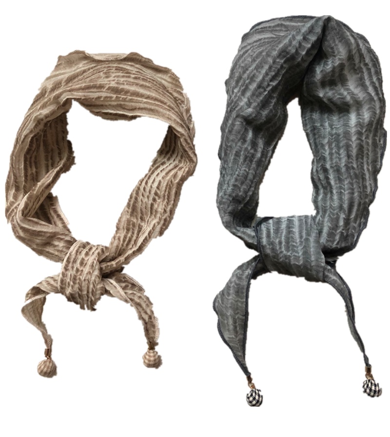 亚麻皱布扎染手工珠子三角巾,春秋女士款围巾,手感舒适,抗皱性强,保形性好,价格实惠