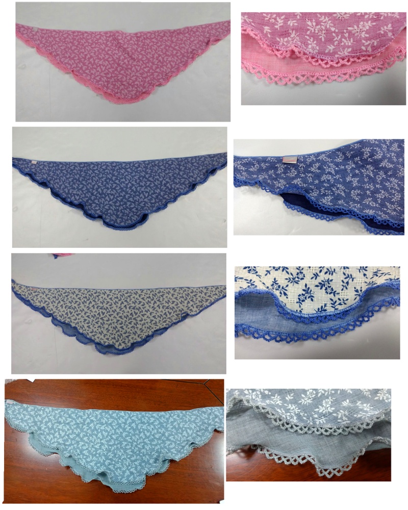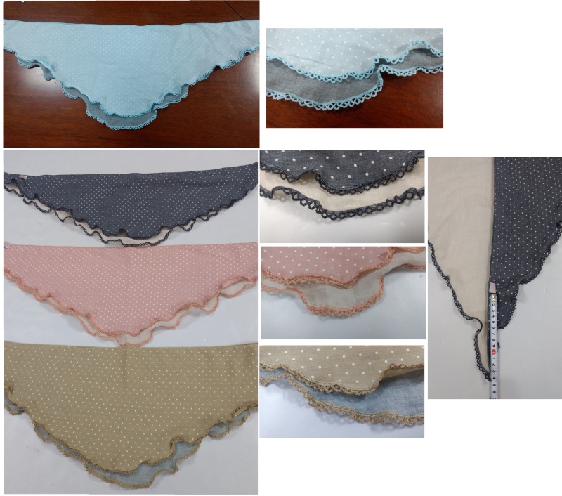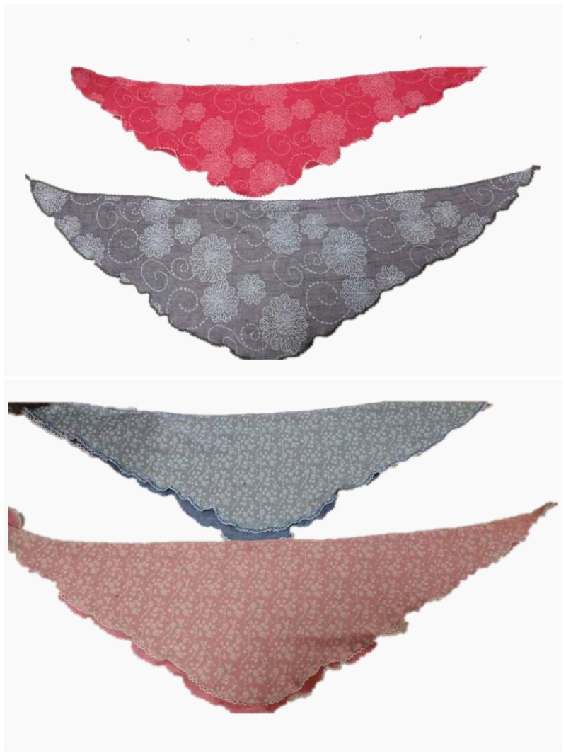人棉双层曲牙三角巾,春秋女士款围巾,手感舒适,抗皱性强,保形性好,价格实惠