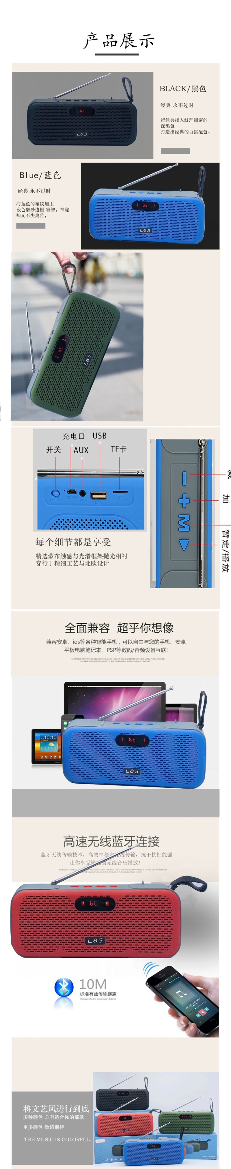 跨境新款L8S蓝牙音箱 户外手提音箱收音机带天线显示桌面电脑音响 投诉