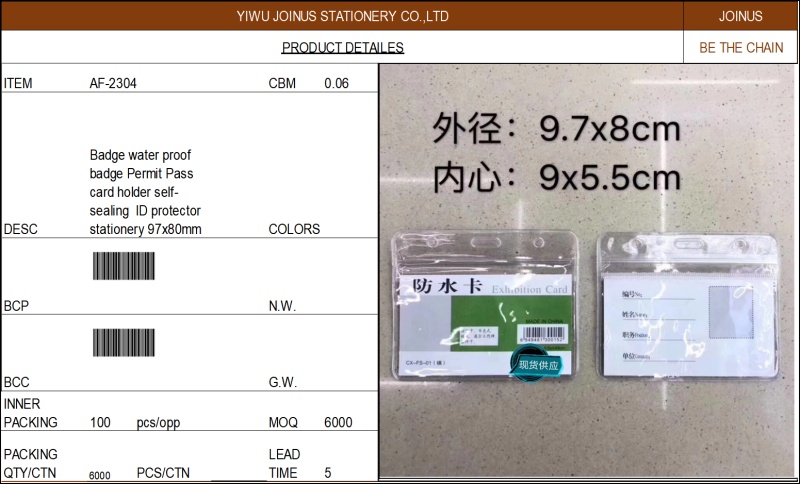 防水卡套PVC柔软卡证件卡套工作证胸牌学生证员工牌带挂绳AF-2304