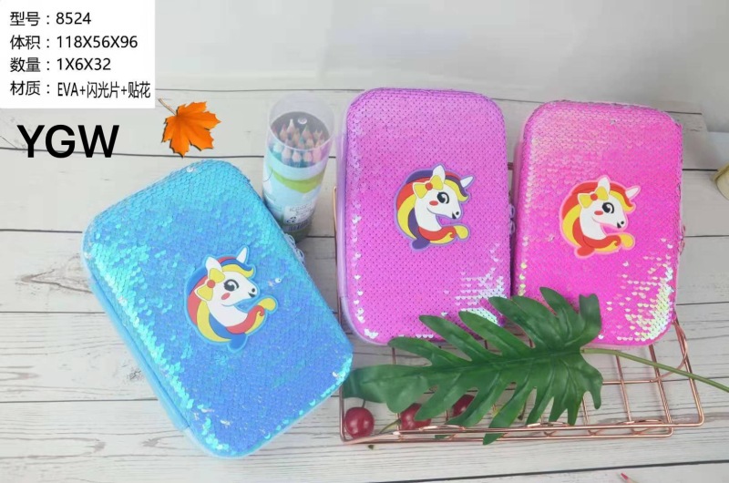 LY8524 独角兽亮片大容量硬壳EVA大号文具盒