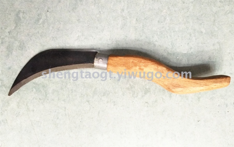 农用折叠锯齿镰刀大头除草刀不锈钢木柄水果菠萝香蕉刀环割小弯刀 投诉