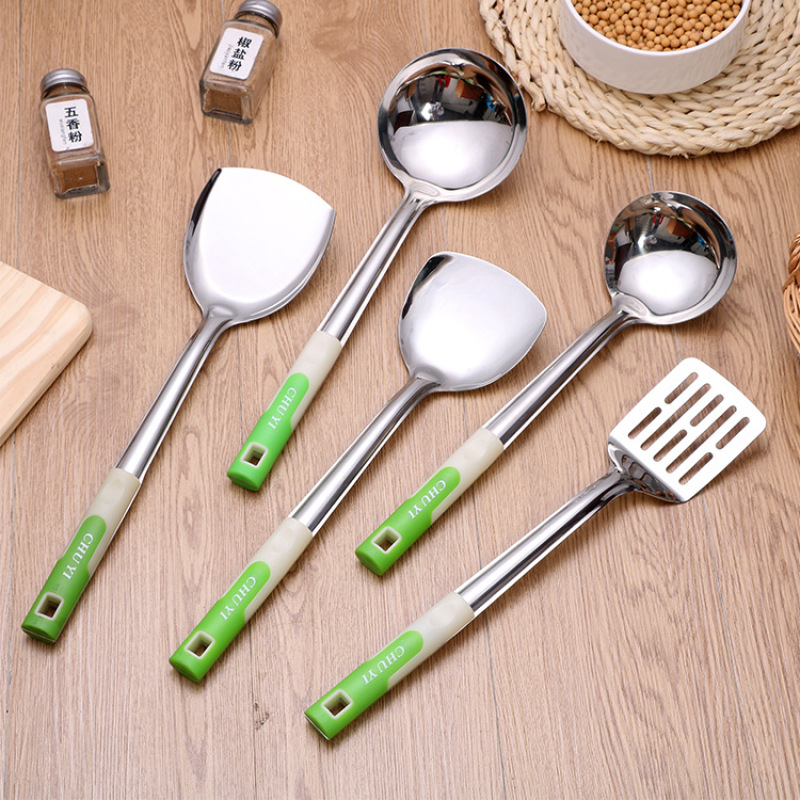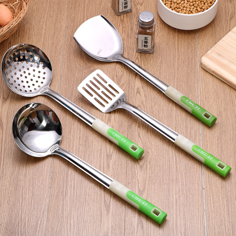 不锈钢厨具 厨房硅胶手柄炒铲勺套装