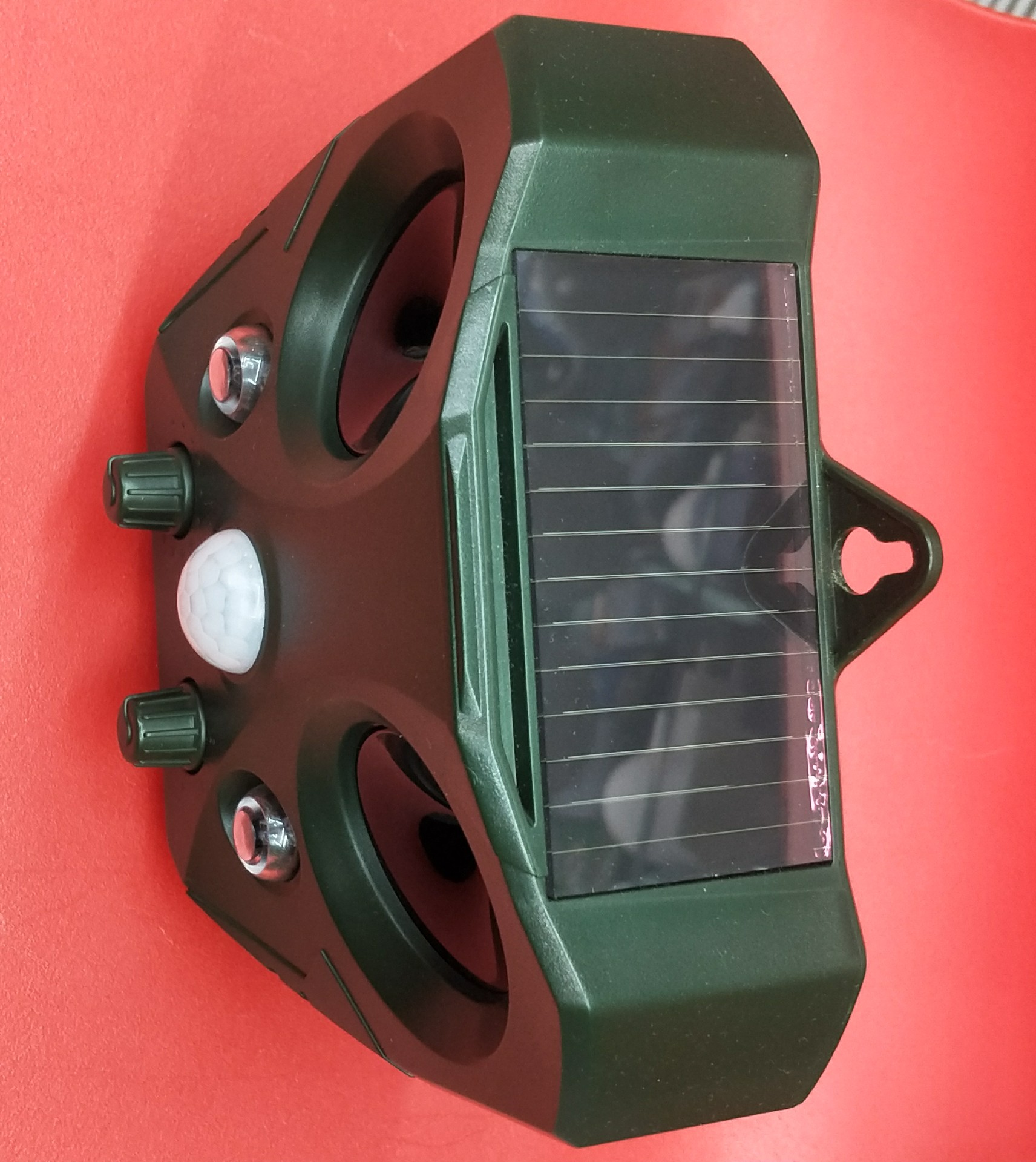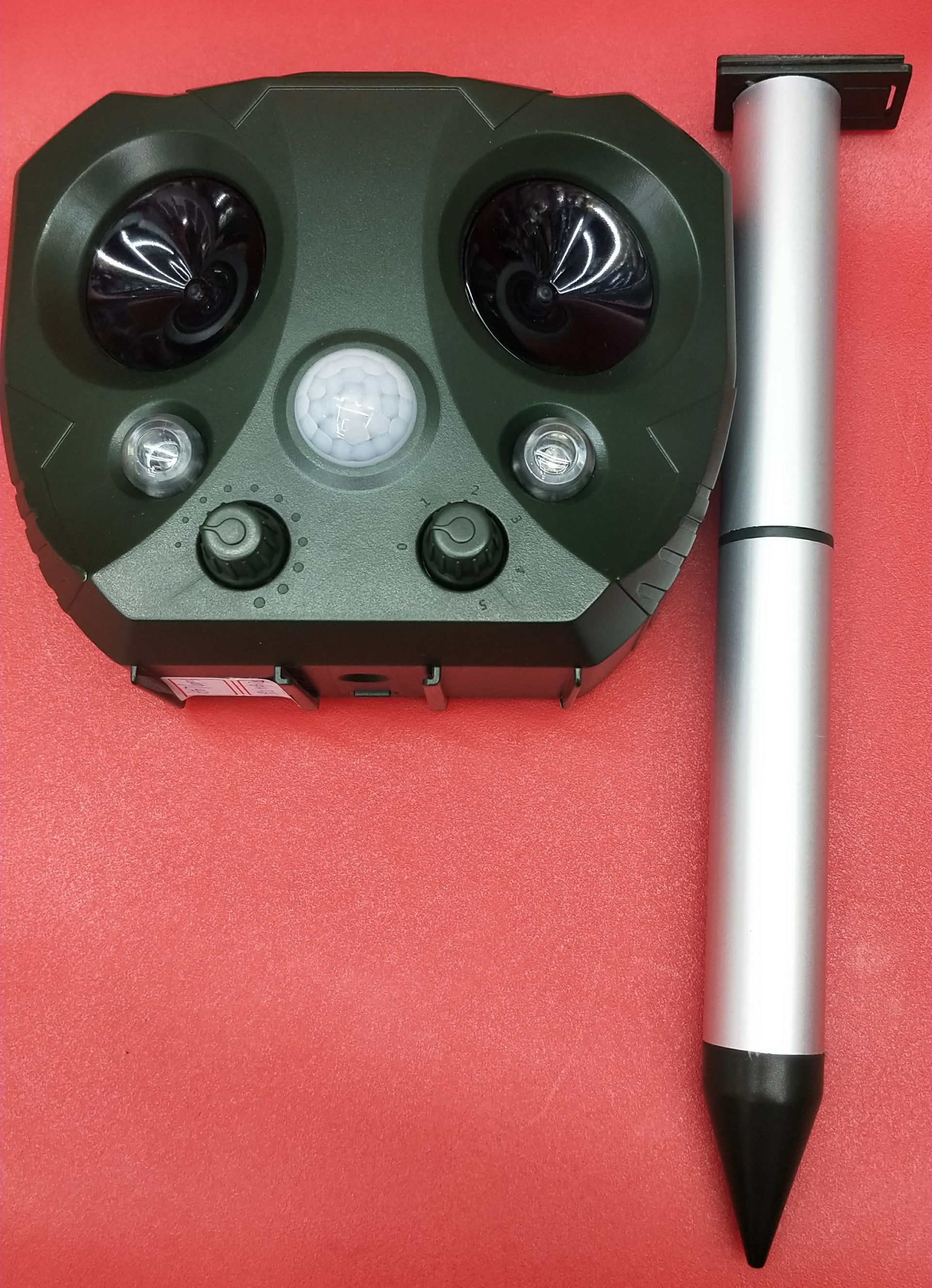 -强大的超声波驱赶动物。当动物进入该区域时,红外感应探测器被触发,产品发出超声波使动物感到不舒服从而逃离该区域。