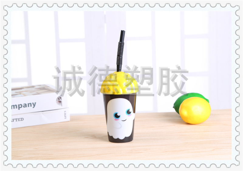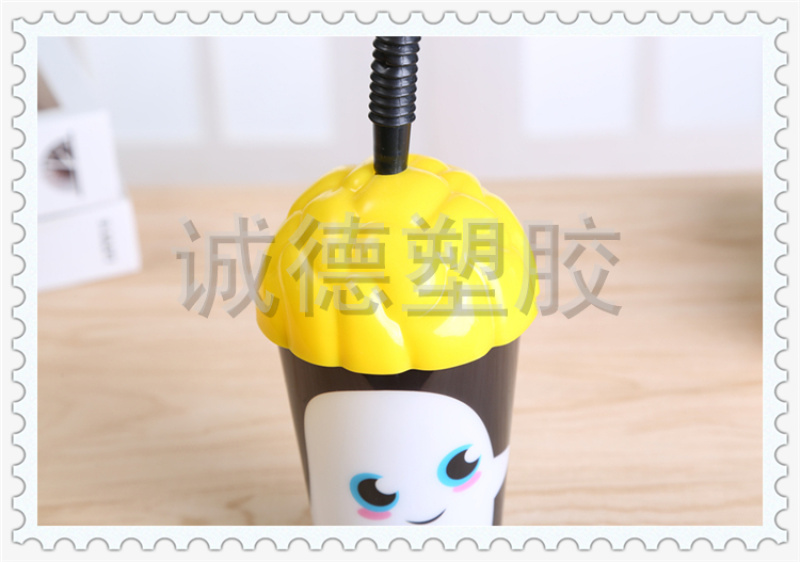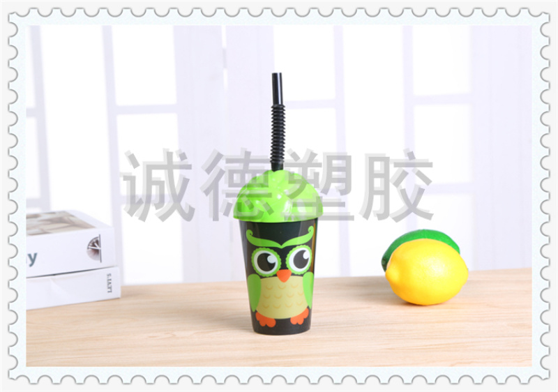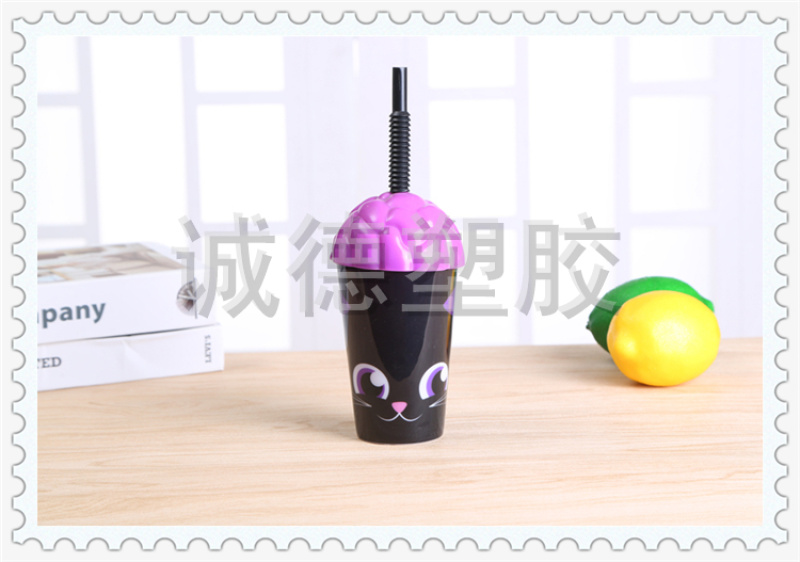 产品名称:俏皮可爱动物图案塑料杯 奶茶店蛋糕店定制饮料杯 多彩变幻水杯