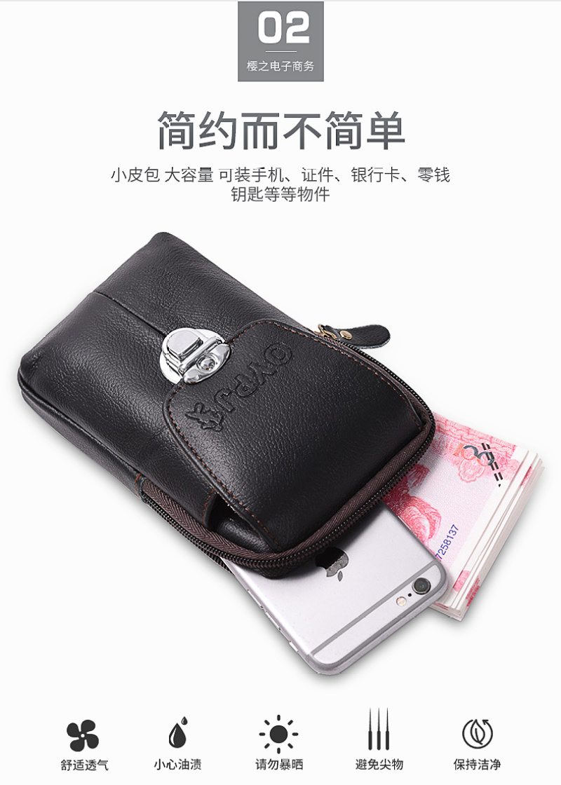 男士皮手机包穿皮带牛皮腰包防水防盗厂家直销 投诉