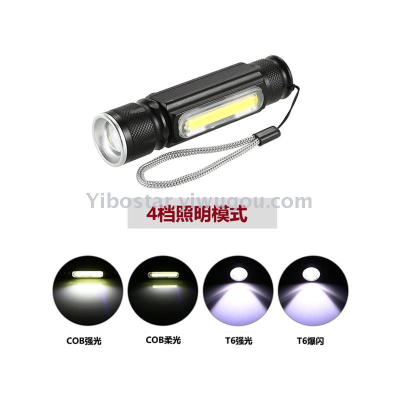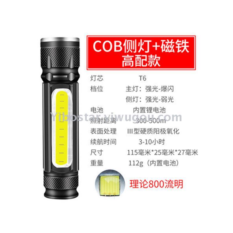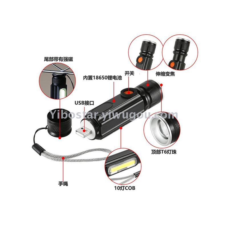 新款LED多功能T6+COB工作检修应急灯USB充电调焦强光手电筒磁铁
