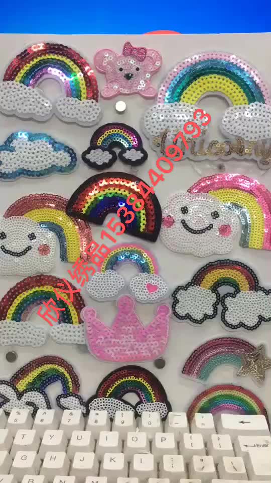 欣仪绣品亮片彩虹皇冠雨朵白云电脑刺绣布贴可烫可缝彩色系列 English | 投诉