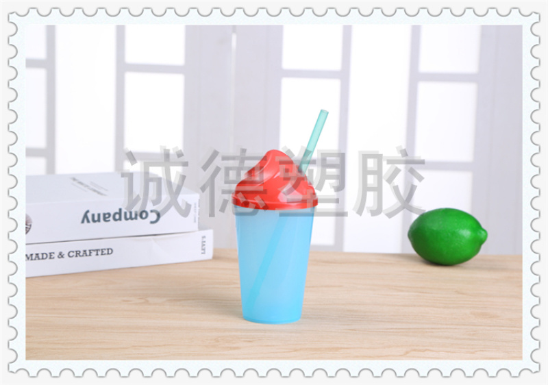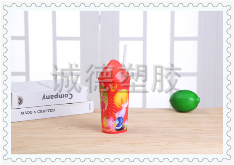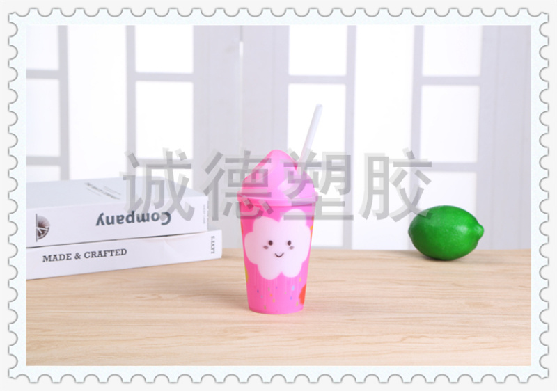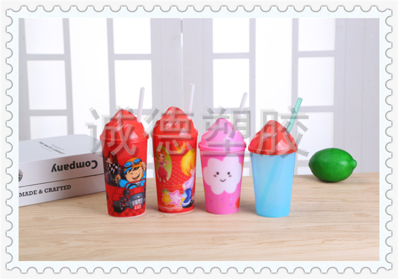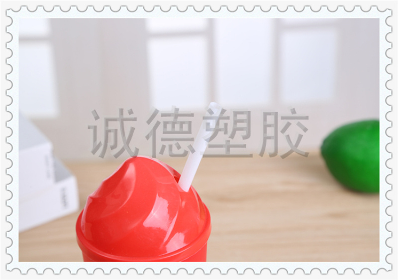 俏皮可爱居家用儿童吸管喝水杯 可定制LOGO 多功能创意塑料水杯
