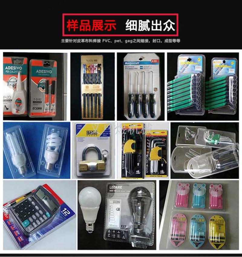 3.本机装置电流调整设备,调整输出功率大小的同调器,调节简单方便,可以根据产品大小及材料厚薄设定所需高频电流,可以控制高周波熔接的程度,能保证产品熔接质量均一性,美观性。