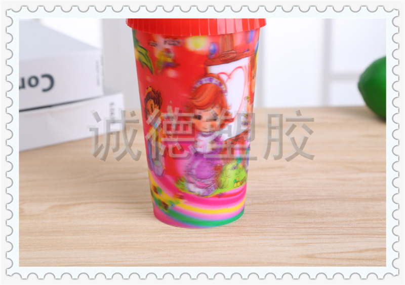 产品名称:3D渐变多彩图案塑料杯 奶茶店蛋糕店定制饮料杯 厂家现货直销