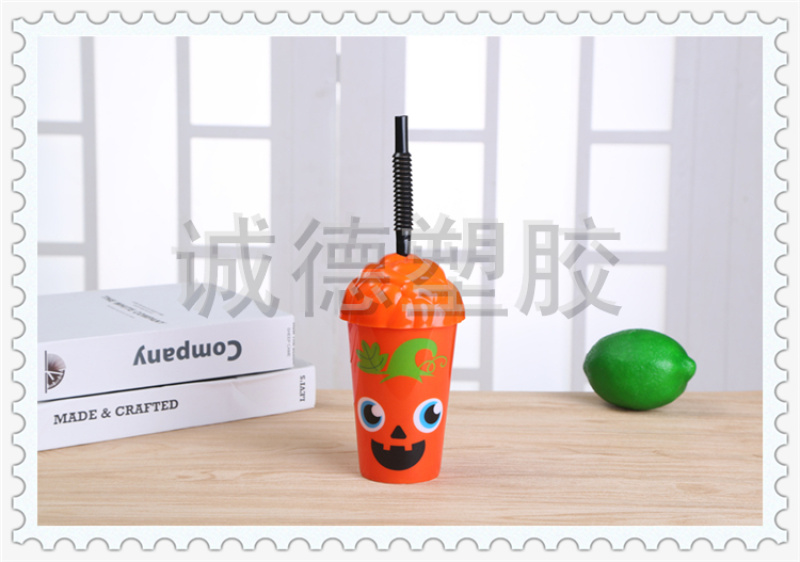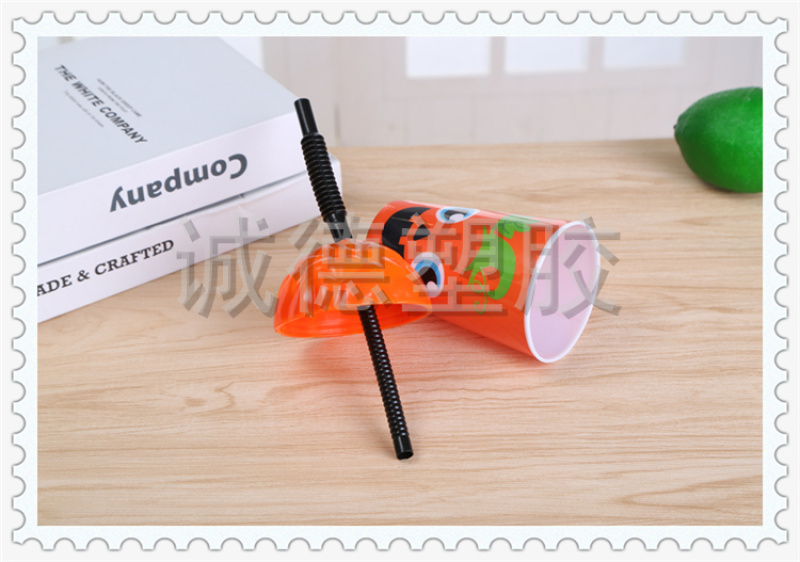 产品名称:多彩卡通笑脸图案带吸管设计塑料水杯 奶茶店蛋糕店定制饮料杯