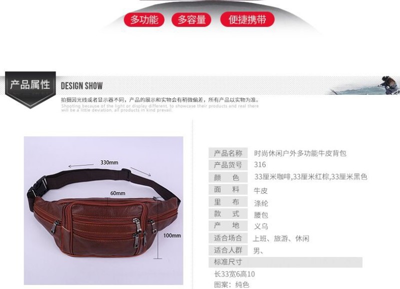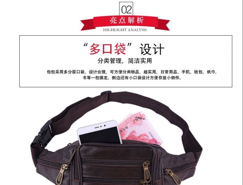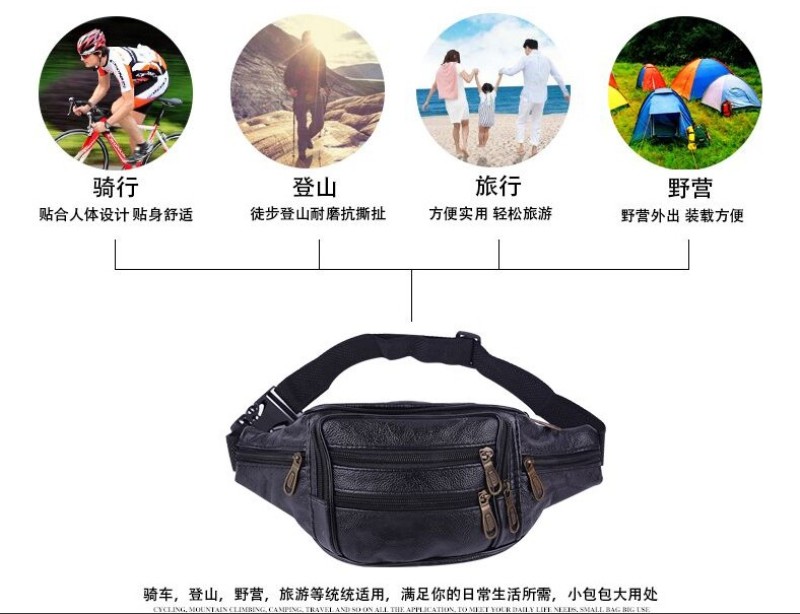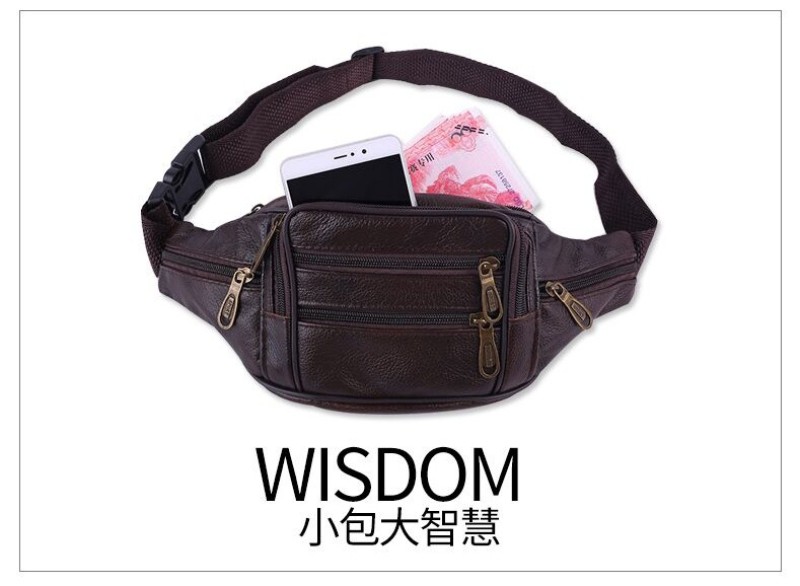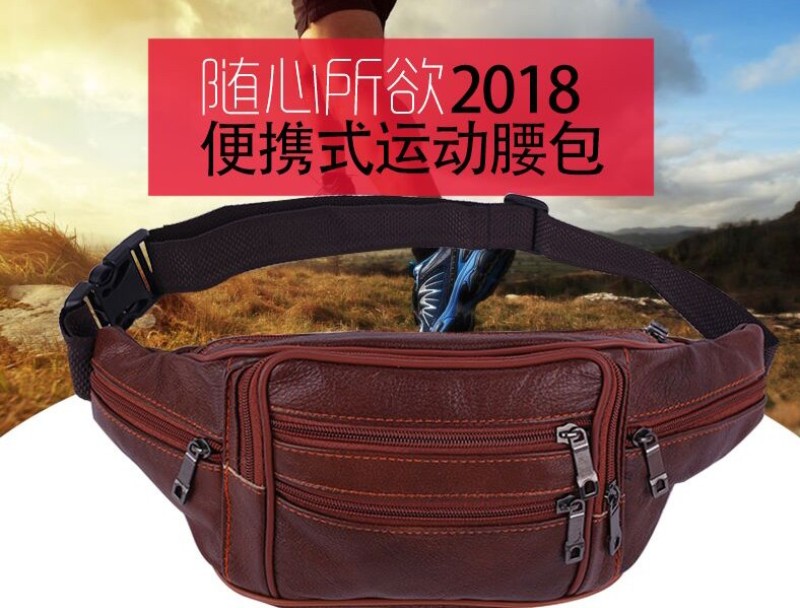 户外运动大容量收钱腰包头层牛皮多功能手机包商务皮腰包批发 投诉