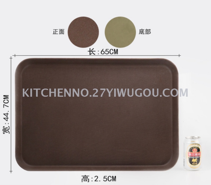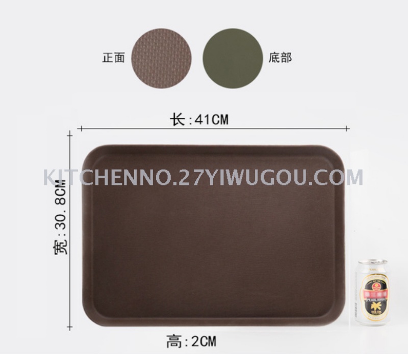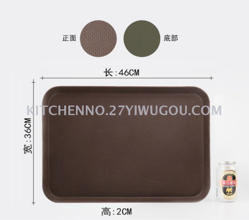 长方形咖啡色黑色钢化防滑塑料酒店用品酒吧餐饮传菜上菜用托盘