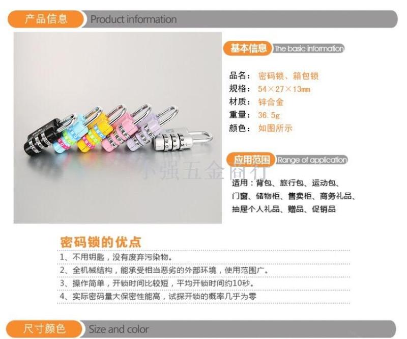 超值价批发三位锌合金密码锁时尚三轮密码锁箱包锁量大从优 投诉