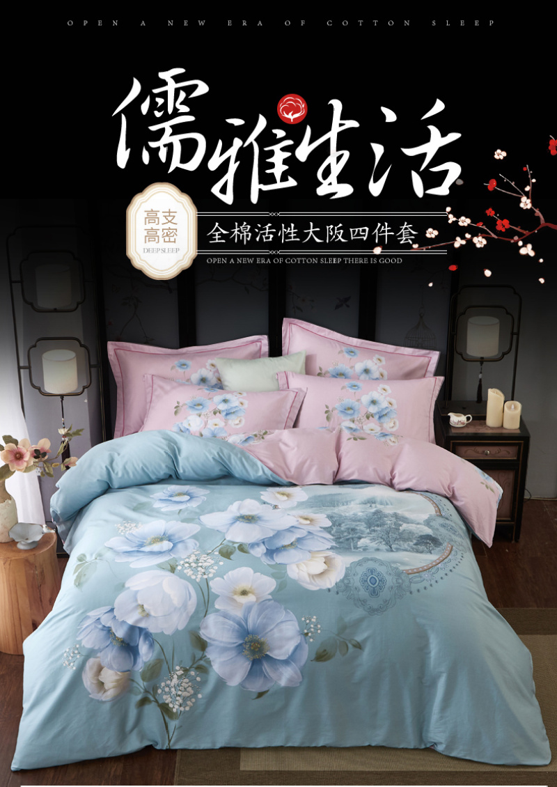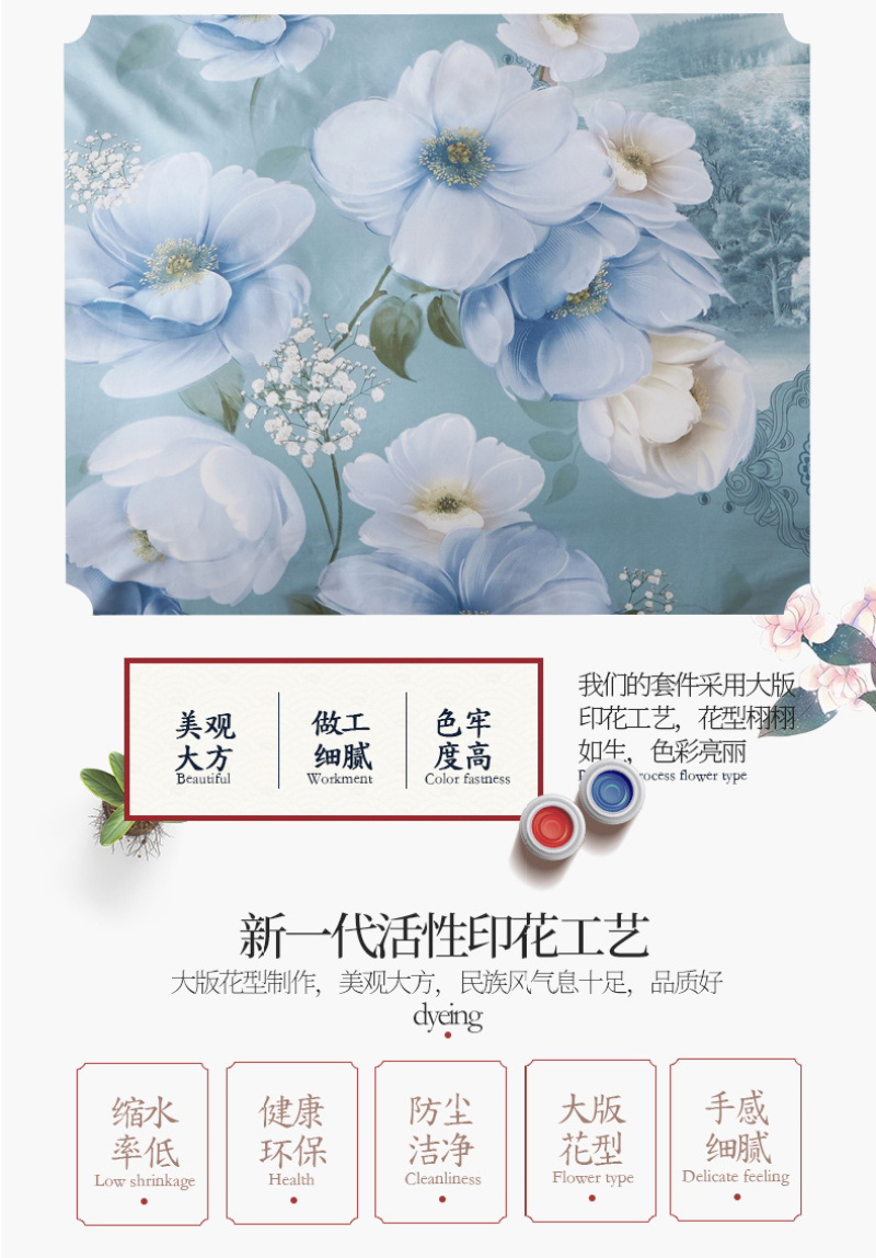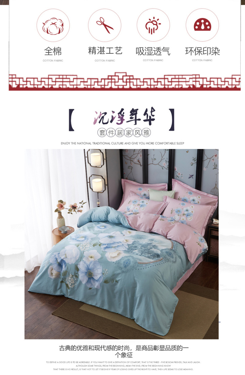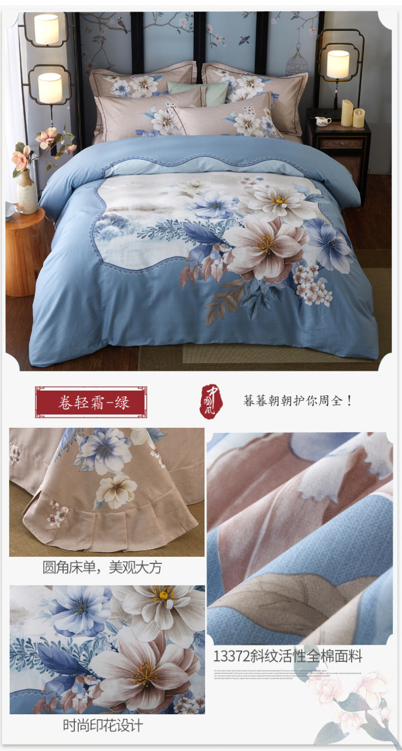 类型: 四件套 材质: 纯棉 品牌: 其他 图案: 植物花卉 工艺: 活性印花 风格: 田园