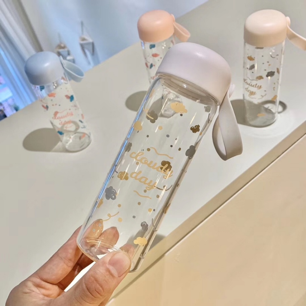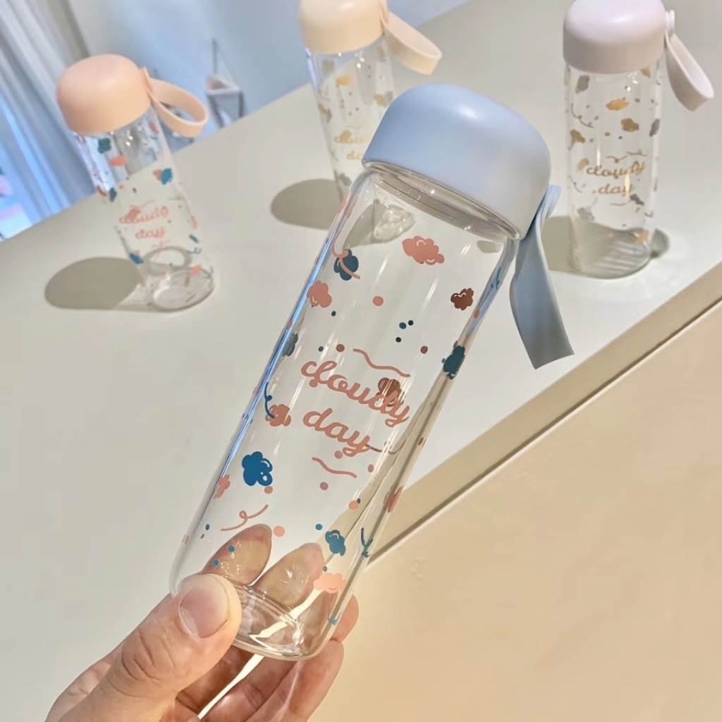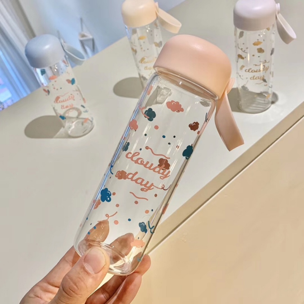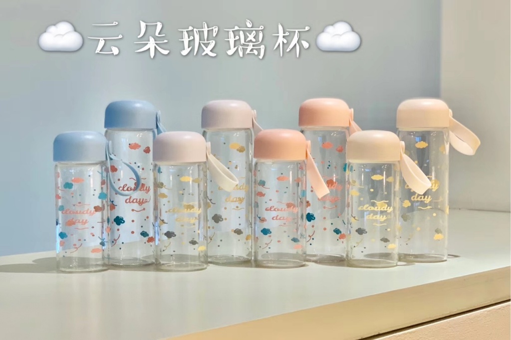 2020年新款玻璃杯高硼硅玻璃圆盖带提手云朵图大小号