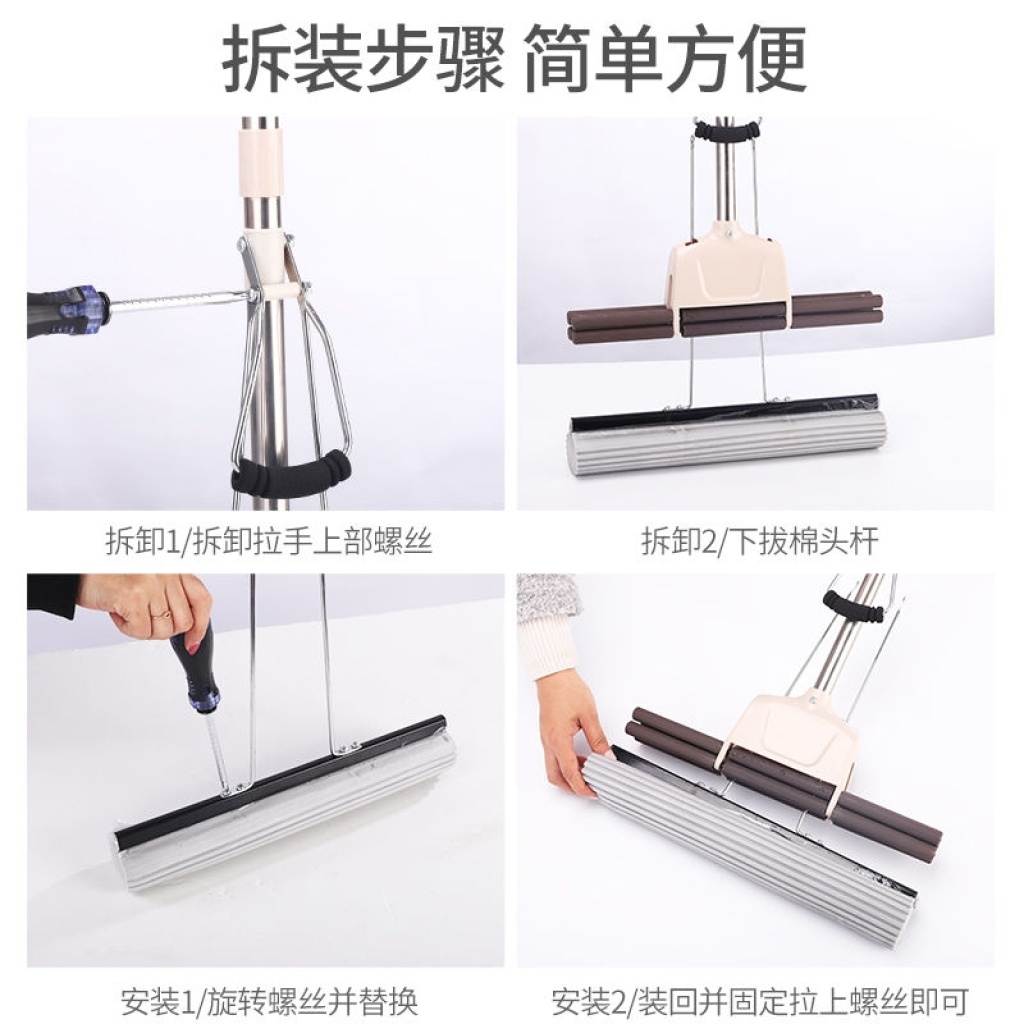 拖把吸水海绵大号免手洗干湿两用滚轮旋转懒人家用挤水胶棉拖把头 投诉