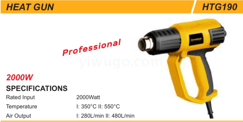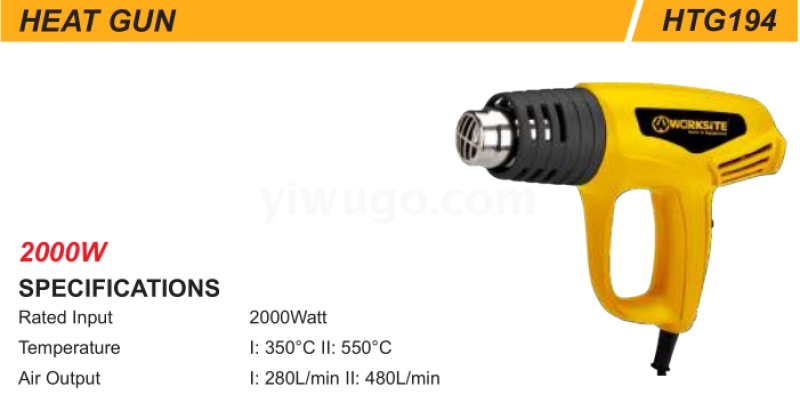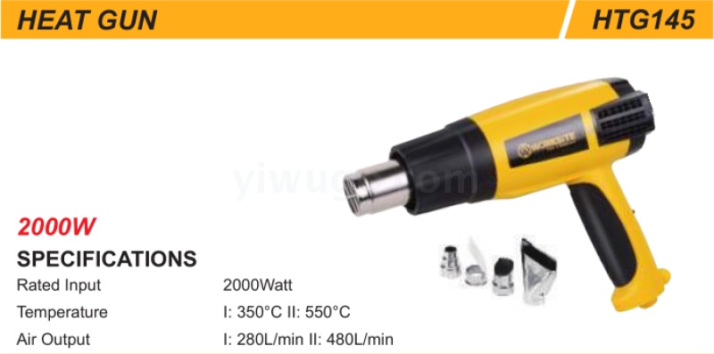 品牌:worksite 功率:2000W 型号:HTG145 电源方式:交流电 颜色:黑黄 电压:220V 装箱数:10pcs 质保期限:1年