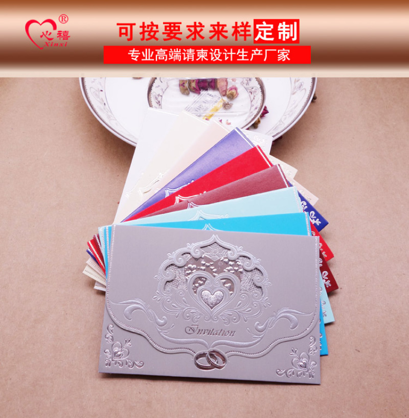 厂家直销金禧结婚请柬邀请卡定做高档请帖烫金凹印高品质婚礼请柬