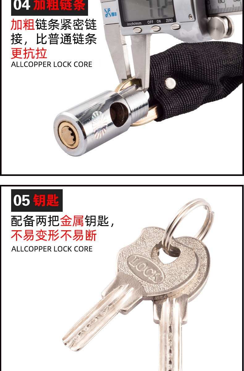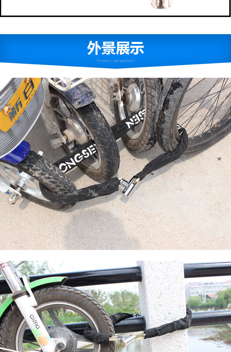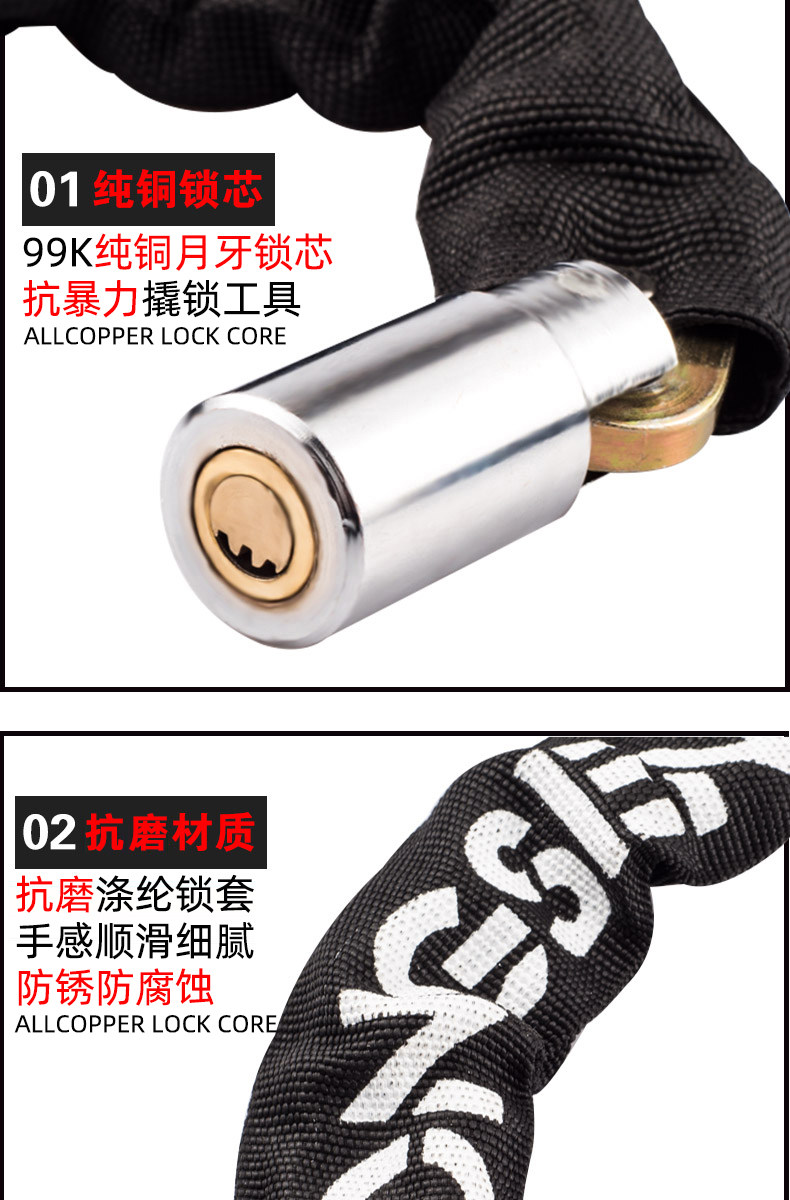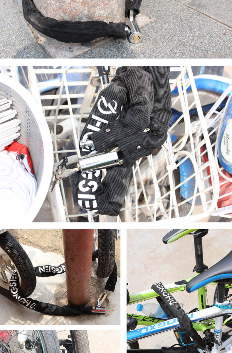 山地车锁链条锁电瓶电动车链子锁单车摩托车锁自行车锁防盗锁配件
