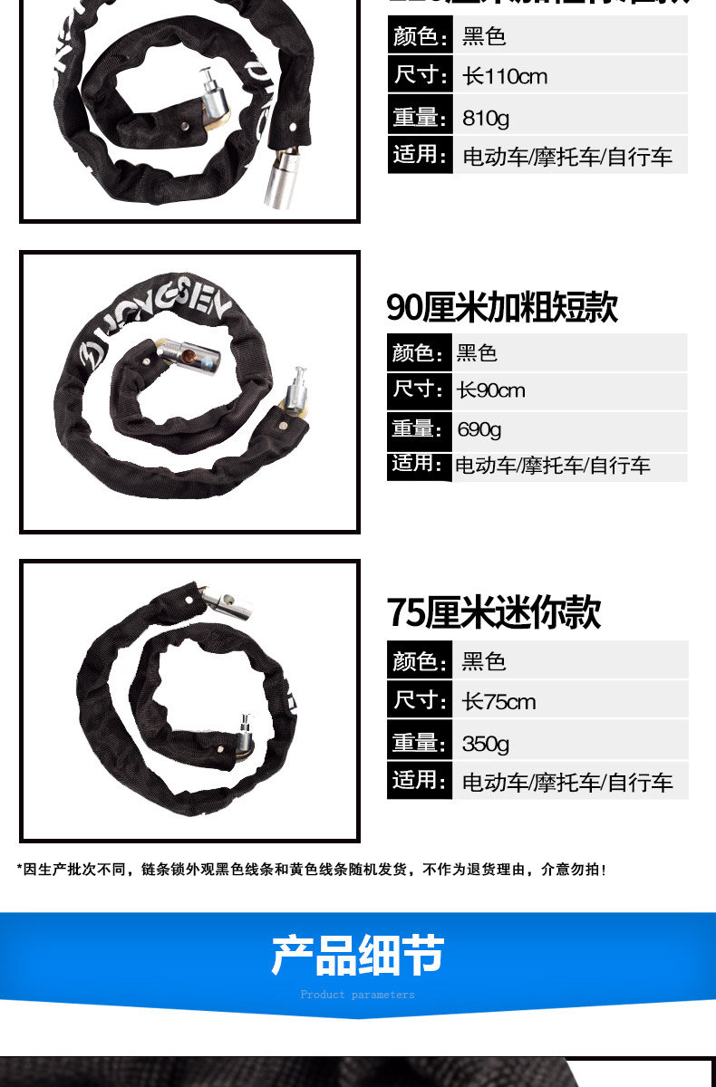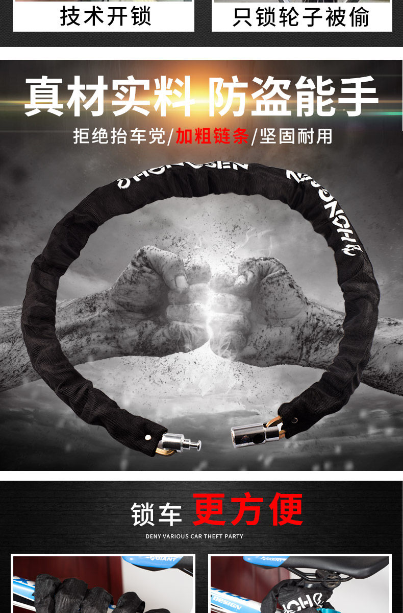 山地车锁链条锁电瓶电动车链子锁单车摩托车锁自行车锁防盗锁配件 投诉