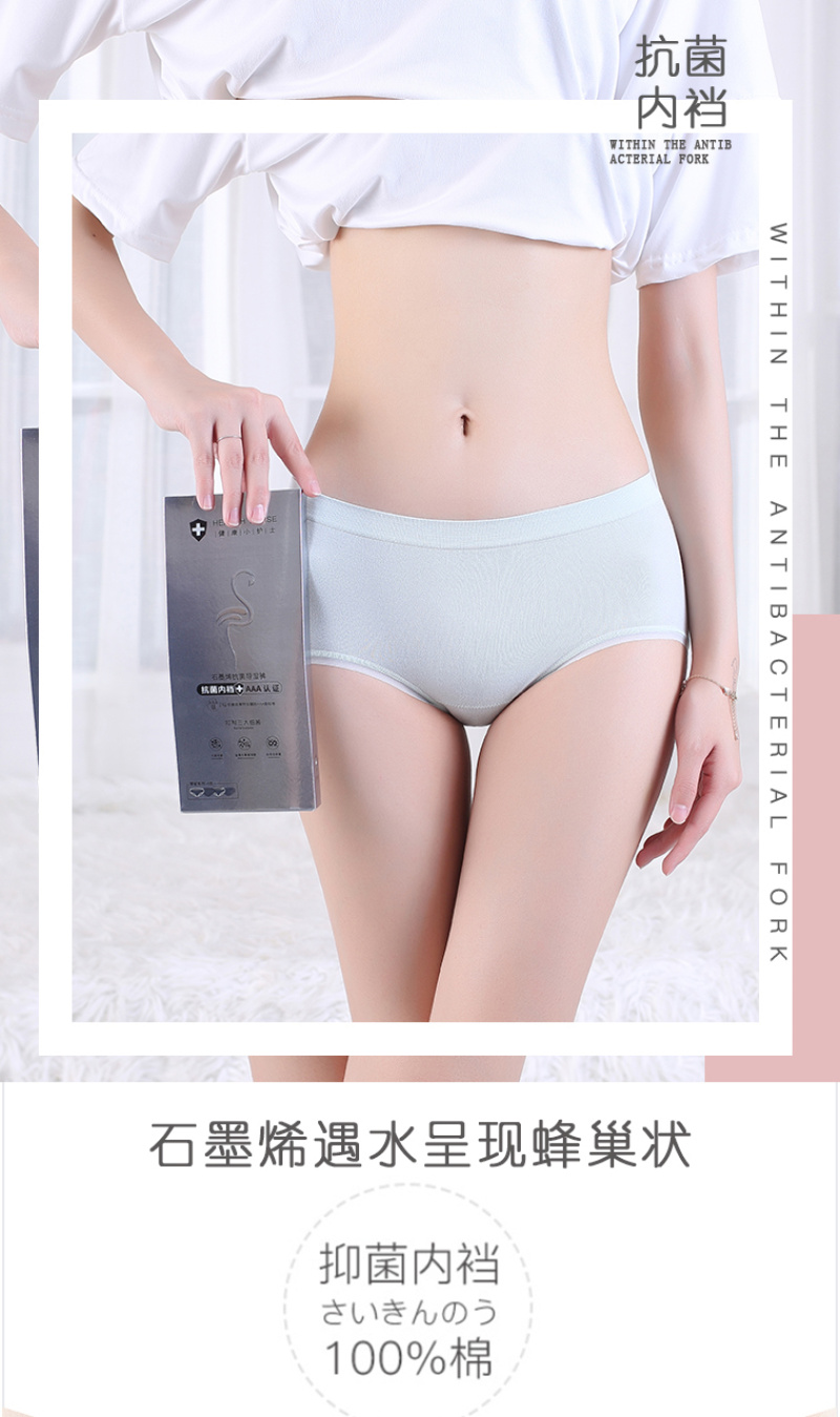 石墨烯女内裤性感无痕一片式透气导湿薄款中腰三角裤4色盒装 English | 投诉
