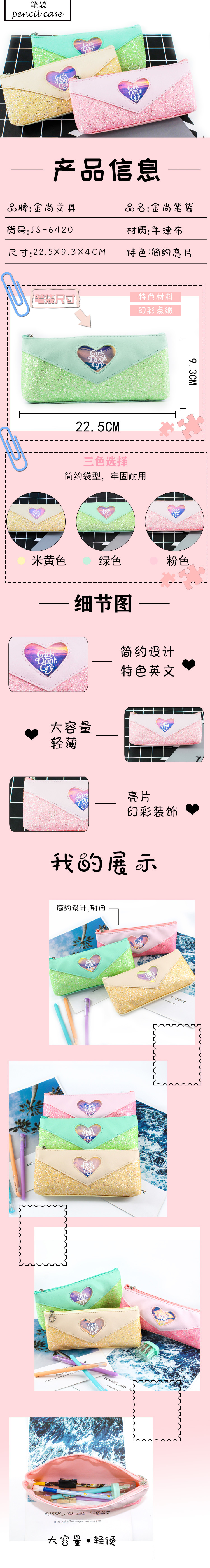 金尚日韩系笔袋女6420可爱大容量中小学生高颜值牛津布加亮片笔袋 投诉