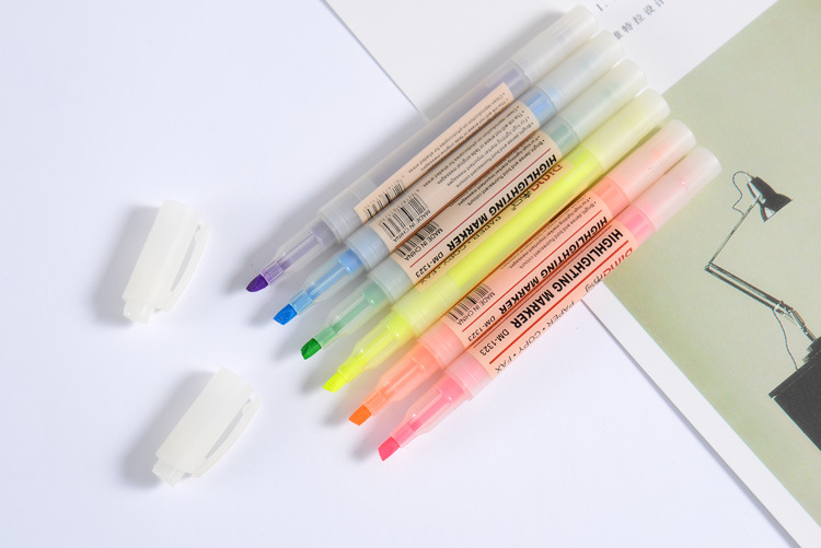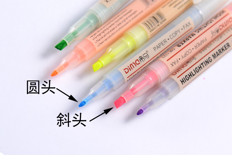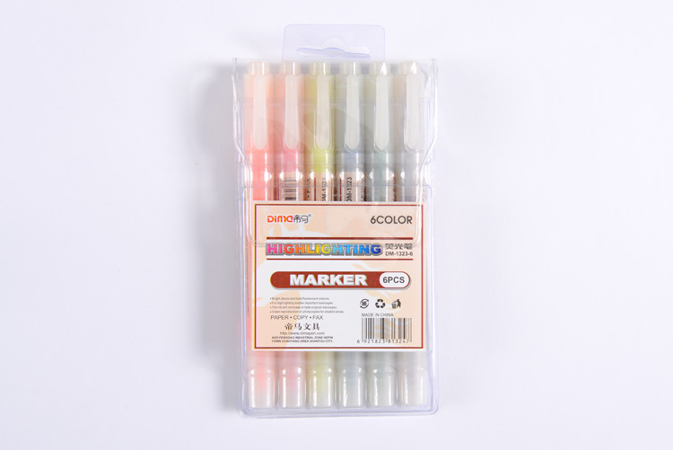 帝马DM-1323 6支装荧光笔糖果色双头莹光彩色笔学生用笔记号